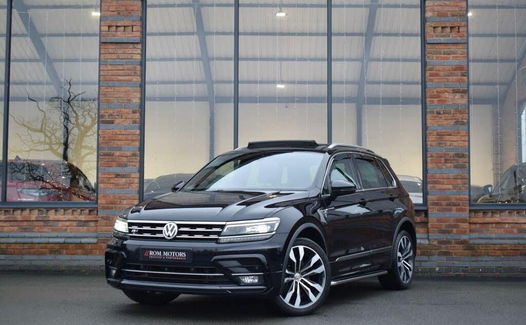 Rom Motors are delighted to present for sale this beautiful VW Tiguan R-Line Tech. Finished in Deep Black Pearl, it's packed full of tech as these R-Line examples come beautifully specified with Full R-Line Styling upgrade inside and out, Heated Seats, Digital Dash, Apple CarPlay and all important Panoramic Glass Sunroof. Our example comes with upgraded 4Motion Drive System and as a 'Tech' also has 360 Surround View Cameras, Power Tailgate, Keyless Entry & more. The final cherry on top is its upgraded Twin Turbo BiTDI Diesel Engine, pumping near 240bhp through it's 4Motion Drive System, quite rare to find. Completed with Full Service History all with VW Main Dealers, then most recently completed in preparation for sale by our in house specialist technicians. It's prepared & ready to drive away today! 10.9% APR Finance Available along side a wide range of lenders. *Appointment Only* Please call ahead to arrange a viewing or test drive with a member of our friendly sales team. All our vehicles are HPI Clear & prepared to a high standard following a full pre-delivery inspection from our in house team of technicans. 3 Months Warranty is included on all vehicle with extensions available up to 36 months, ask our sales team for more details. Videos available on request. PAYMENT: We accept debit cards for payments up to £500. For larger payments we accept BACS (bank transfer) only. Please check transfer processing times and limits with your bank if you plan to pay on collection as we are unable to release cars without cleared funds. Please also bring anything you may need to access your online banking on the day including securekeys, card readers etc. Please note a £249 admin fee is applicable for purchases funded by third party finance lenders. Call 01455 633577 or WhatsApp 07870 606040