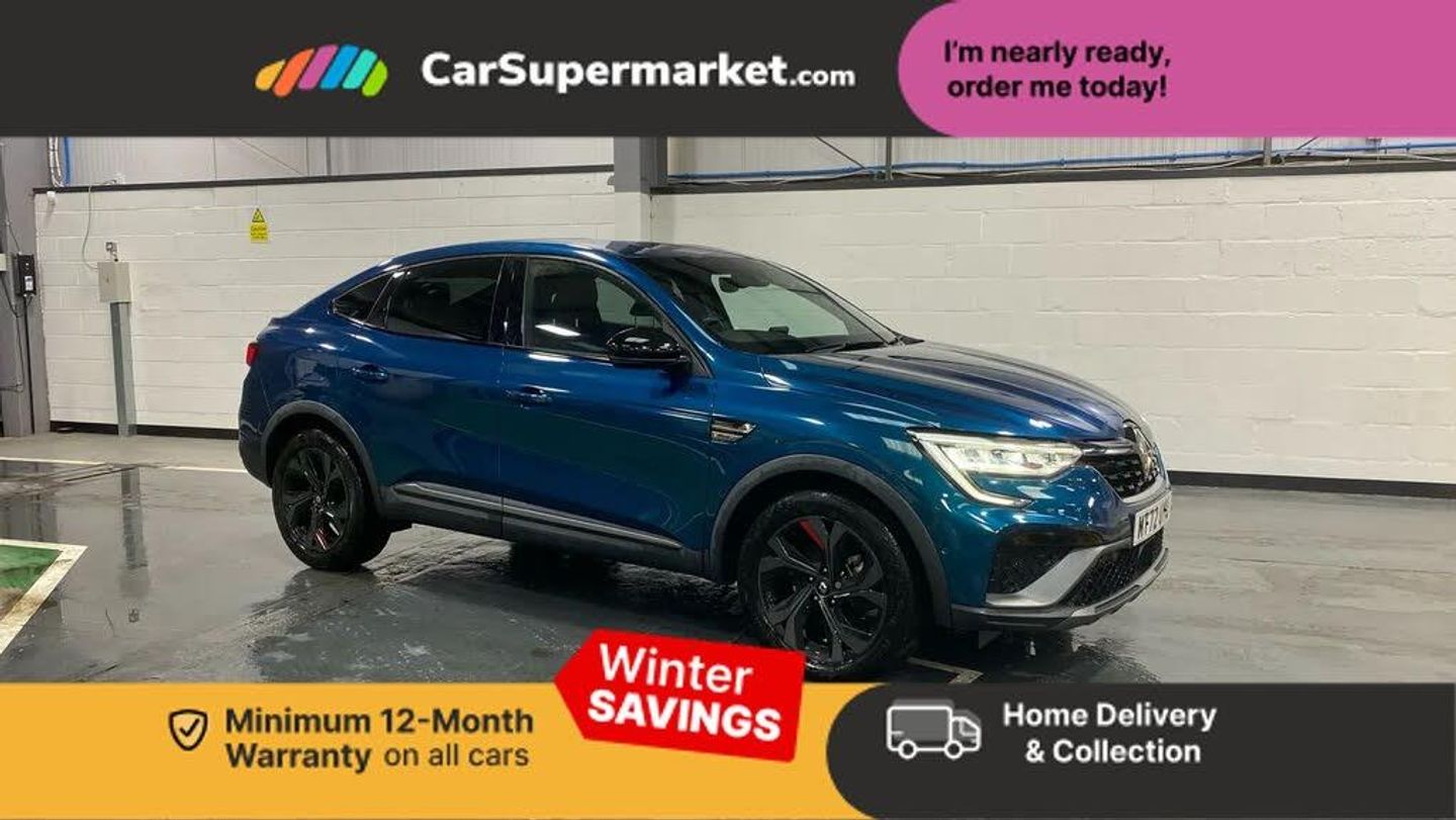 7" TFT Driver information display,Blind spot warning,Bluetooth system,EASY LINK 9.3" portrait touchscreen with navigation, Google search and traffic information,eCall emergency call system,Eco mode,EV button to activate pure mode,Front and rear parking sensors,Gear change indicator,Lane departure warning,Lane keep assist,Multi-sense - 3 driving modes and 8 ambient lighting,Rear cross traffic alert,Rear view camera,Renault automatic emergency assist,Smartphone integration compatible with Apple CarPlay and Android Auto,Traffic sign recognition with over speed prevention,Trip computer,Variable assistance electric power steering,Wireless phone charger,DAB radio,USB port,3rd brake light,Auto dimming rear view mirror,Automatic headlights,Automatic high / low beam,Automatic windscreen wipers with rain sensor,Black side door protection with gun metal insert,Body coloured bumpers,C-shaped LED front signature lighting,Chrome decopart on wing (fender molding) with R.S. Line badge,Double chromed exhaust tailpipes elements,Extra tinted rear windows and tailgate,Frameless rear view mirror,Front and rear electric windows,Front bumper with F1 blade and honeycomb front grille,Front driver window with one touch facility and anti-pinch function,Front grille with chrome on upper part,Full LED headlights,Glossy black door mirror and lower window lining,Gun Metal front and rear skid plates,Heated rear window,R.S. Line badges on front wing and hatch door,Rain sensor,Rear windscreen wiper,Shiny black shark fin antenna,Side mirrors adjustable electrically, electrically foldable, with defrosting and temperature sensor, automatically foldable at vehicle closure,3 seat bench in 2nd row,60:40 split and fixed base rear seats,Aluminium pedals,Automatic climate control with combined filter, humidity sensor and AQS,Black interior roof lining,Carbon style dashboard,Central console with storage,Driver's seat height adjustment,Electrically adjustable front seats,Front and rear head restraints,Height and reach adjustable steering wheel,ISOFIX child seat fixing points on rear outermost seats,LED front and rear roof lights,Passenger seat height adjuster,R.S. line black suede-leather upholstery with red/grey stiching,R.S. Line perforated leather steering wheel with red/black harmony and R.S. Line badge,Rear air vents,Red inserts on air vents,Single front passenger seat,Parking Pack - Hands-free parking & flank protection - Arkana,Winter pack - Arkana,3x3 point rear seat belts,ABS+EBA,Active emergency braking system,B Brake Mode - One pedal driving with increased regenerative braking,Distance warning alert,Driver airbag,Driver and passenger front and side airbag deactivation,Driver and passenger side airbags,Driver height adjustable seat belt,Electronic parking brake with auto hold,ESC (Electronic Stability Control),Front and rear no seatbelt warning sound,Front curtain airbags,Front head airbags,Hill start assist,Passenger airbag,Tyre pressure warning light,Anti drill door locks and locking fuel cap,Central door locking,Deadlocking system,Hands free keycard with Keyless access and start,RAID (Renault Anti-Intruder Device) automatic door locking,Rear side wing door and window child locking function (front driver door control panel),Superlocking,Thatcham alarm,18" Silverstone diamond alloy wheels with red inserts,Zanzibar Blue,RS Line Suede-Leather - Black with Red-Grey Stitching