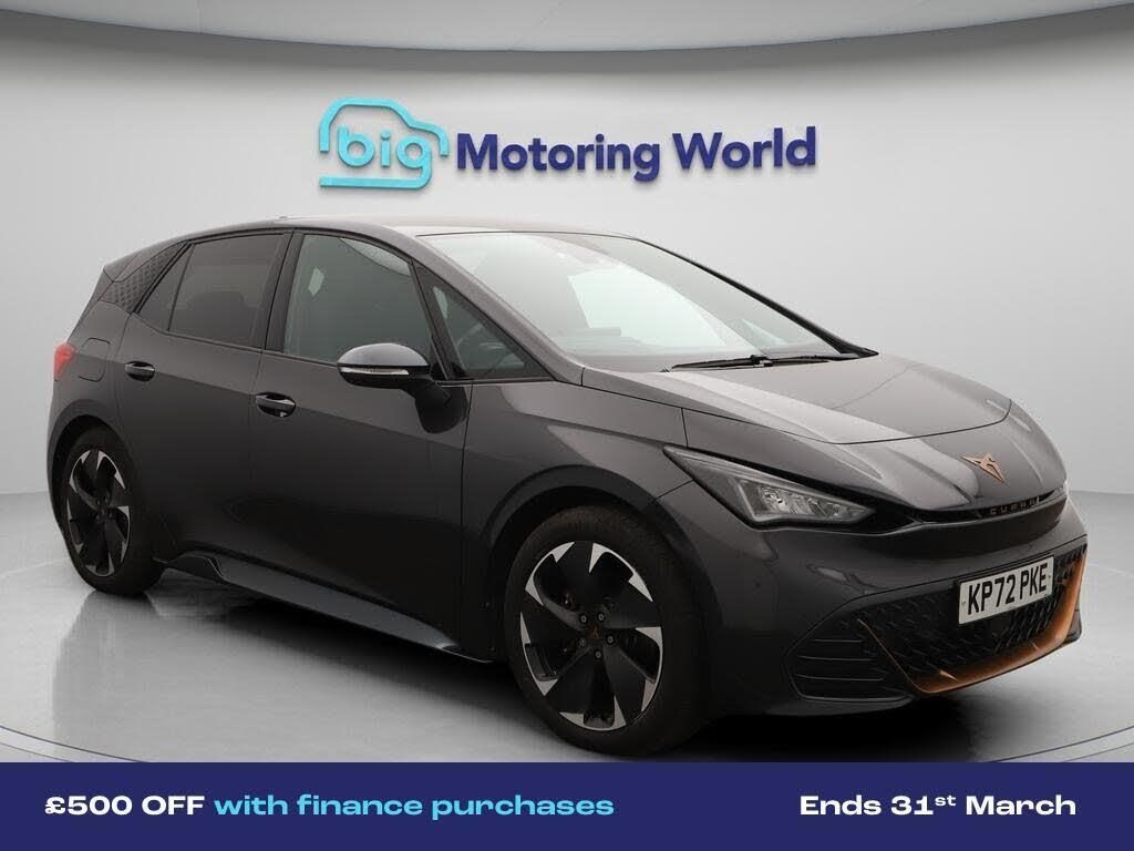 £500 towards your finance depo-Our CUPRA Born is finished in Grey. Specification includes a range of fantastic features including £500 towards your finance deposit, Head up Display, 19'' Alloy wheels, Apple CarPlay, Lane Assist, Android Auto, Satellite Navigation, Privacy Glass, Heated Seats, Rear View Camera Specification information is supplied by CAPHPI and may vary to the actual car. This data does not form any part of a buying contact. Please check specification prior to purchase in-store. The MOT is valid until September 2026, visit bigmotoringworld.co.uk for more photos, a 360 tour, service history and a free HPI report.Were BIG on peace of mind and this Grey CUPRA Born has completed our comprehensive 200 point inspection and passed all checks. Its ready for you to drive away with immediate collection in-store. We include a 90-day warranty as standard plus an option to extend for up to 3 years.Reserve this car exclusively for you, safely and securely at bigmotoringworld.co.uk, with a fully refundable £99 deposit. Test drive before you buy, with no commitment, no hassle and a completely haggle free experience. Still searching and want to see thousands more cars? We are BIG on choice with over 8000 cars to choose from.Visit our award winning web site bigmotoringworld.co.uk.Were Big Motoring World and were BIG on what matters to you.