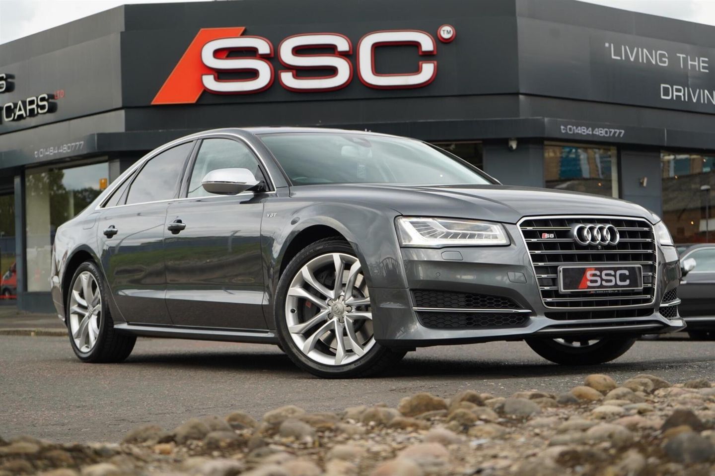 Stunning S8 V8 TFSI Finished In Daytona Grey Pearl With Black Valcona Leather. Fantastic Spec Inc: Adaptive Air Suspension, Carbon Inlays, Advanced Key, Audi Drive Select, Audi Parking System Advanced, Surround Cameras, Audi Matrix LED Headlights, BOSE Surround Sound System, DAB Digital Radio, Hands-Free Boot Opening System, 20'' Alloys, Double Glazing, Dynamic Steering, Power Operated Tailgate, LED Interior Ambient Lighting Pack, Electric and Heated Front Seats With Memory. This S8 Comes With Full Service History.