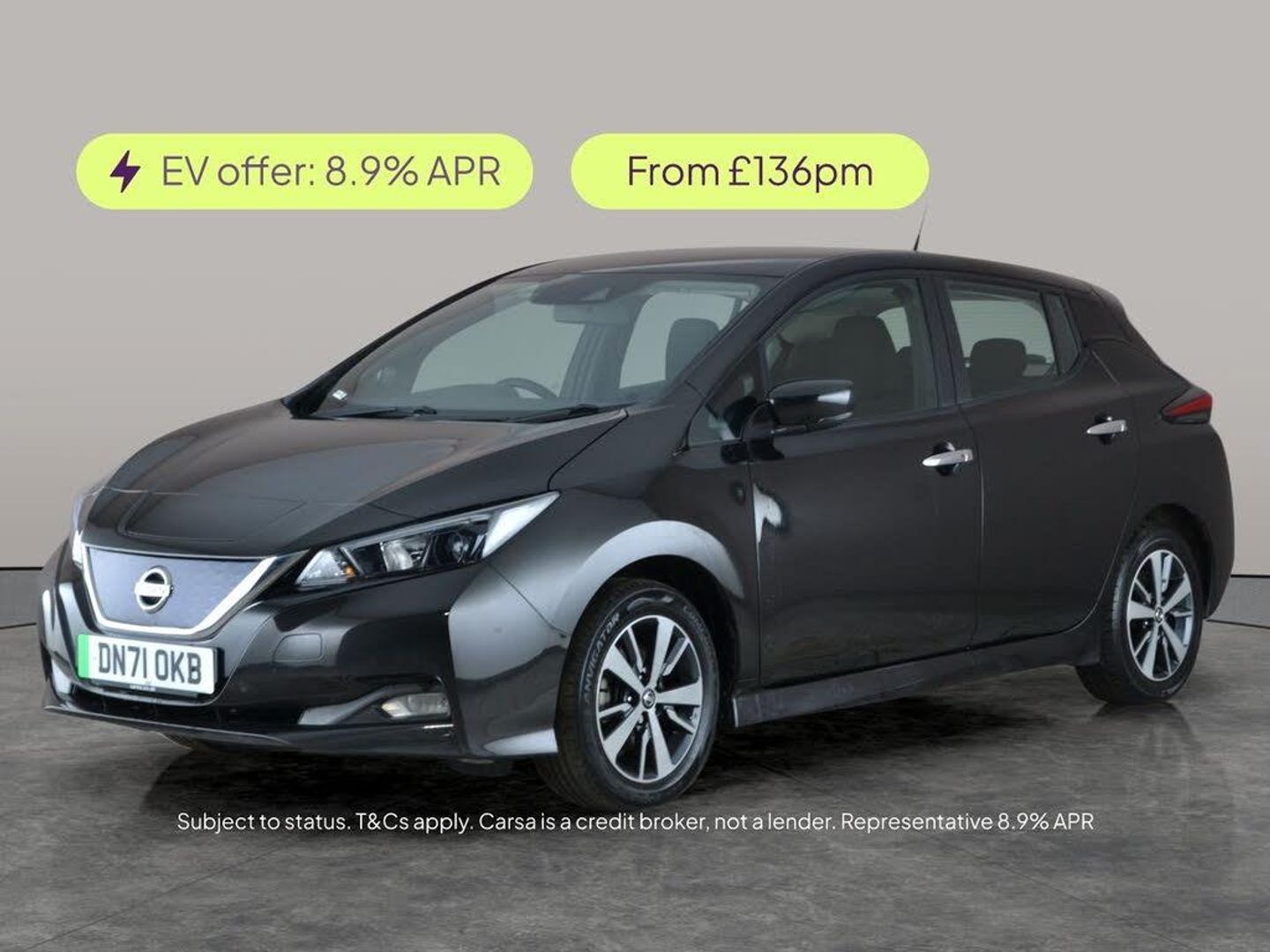 Experience smooth electric driving with this stylish black Nissan Leaf. Enjoy top tech including Apple CarPlay, sat nav, and a handy reversing camera, making every journey easy. Safety is enhanced with intelligent lane intervention, blind spot assist, and lane departure warning. Comfort features like cruise control, air conditioning, and keyless start add to the enjoyment. The Leaf sits on smart 16in alloy wheels and comes ready to go with included charging leads. A fantastic choice for modern, eco-friendly motoring. 2 services recorded, last serviced on 22/09/2025 at 40,628 miles. MOT to 20/12/2026. Visit our website for service history, online valuation, full vehicle specification plus multiple images. This vehicle is VAT qualifying. Any feature/option specified here is from 3rd party data. We cannot guarantee the accuracy of any specification supplied by a 3rd party. We recommend that you physically check the specification of the vehicle on site prior to purchase. This information does not form part of the buying contract. Terms & Conditions apply. We have over 2,000 cars available from our 10 national branches, check our website to see all our stock. Our Trustpilot rating is 4.4/5 with over 9,000 reviews.