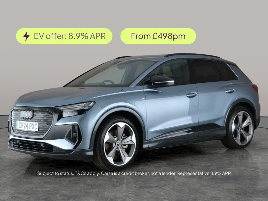Experience the future with this striking blue Audi Q4 E-tron SUV. Enjoy premium comfort with heated seats, an upgraded sound system and LED headlights for superb visibility. Stay safe with Audi Side Assist, adaptive cruise control, blind spot assist and a reversing camera. MMI Navigation Plus and advanced driving modes elevate your journeys, while lane departure warning and traffic sign recognition provide peace of mind. Bluetooth keeps you connected on the go an impressive electric SUV not to be missed. MOT to 18/07/2027. Visit our website for service history, online valuation, full vehicle specification plus multiple images. Certain features listed may be available via subscription packages at extra costs, please consult with Audi for details. Any feature/option specified here is from 3rd party data. We cannot guarantee the accuracy of any specification supplied by a 3rd party. We recommend that you physically check the specification of the vehicle on site prior to purchase. This information does not form part of the buying contract. Terms & Conditions apply. We have over 2,000 cars available from our 10 national branches, check our website to see all our stock. Our Trustpilot rating is 4.4/5 with over 9,000 reviews.