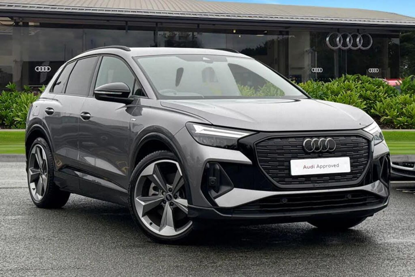 Step into the future of driving with this impressive Approved Used Audi Q4 e-tron. Presented in a sleek and modern Grey paint finish, this fully electric SUV combines a clean design with a powerful 82kWh battery. As a Black Edition model, it features a striking look with darkened detailing that perfectly complements its bold road presence. One of the first things you will notice are the stunning 21-inch 5-Arm Rotor Evo Design alloy wheels, which give the car a sporty and confident stance. Practicality is at the heart of this vehicle, featuring a Rear Power Tailgate that makes loading shopping or luggage effortless. When it comes to parking, the Rear View camera and integrated parking sensors provide a clear view of your surroundings, making tight spaces easy to navigate. The cabin is a comfortable place to be, offering Heated front seats to keep you warm on chilly mornings. Long journeys are made more relaxing with the Cruise control system, which helps you maintain a steady speed on the motorway. You can stay connected safely while on the move thanks to the Audi smartphone interface, allowing you to link your phone for easy access to your favourite navigation and music apps. Book your test drive today This vehicle is compliant with Clean Air Zone (CAZ) or Ultra Low Emission Zone (ULEZ) regulations, meaning it produces low emissions and helps to improve air quality in our cities.