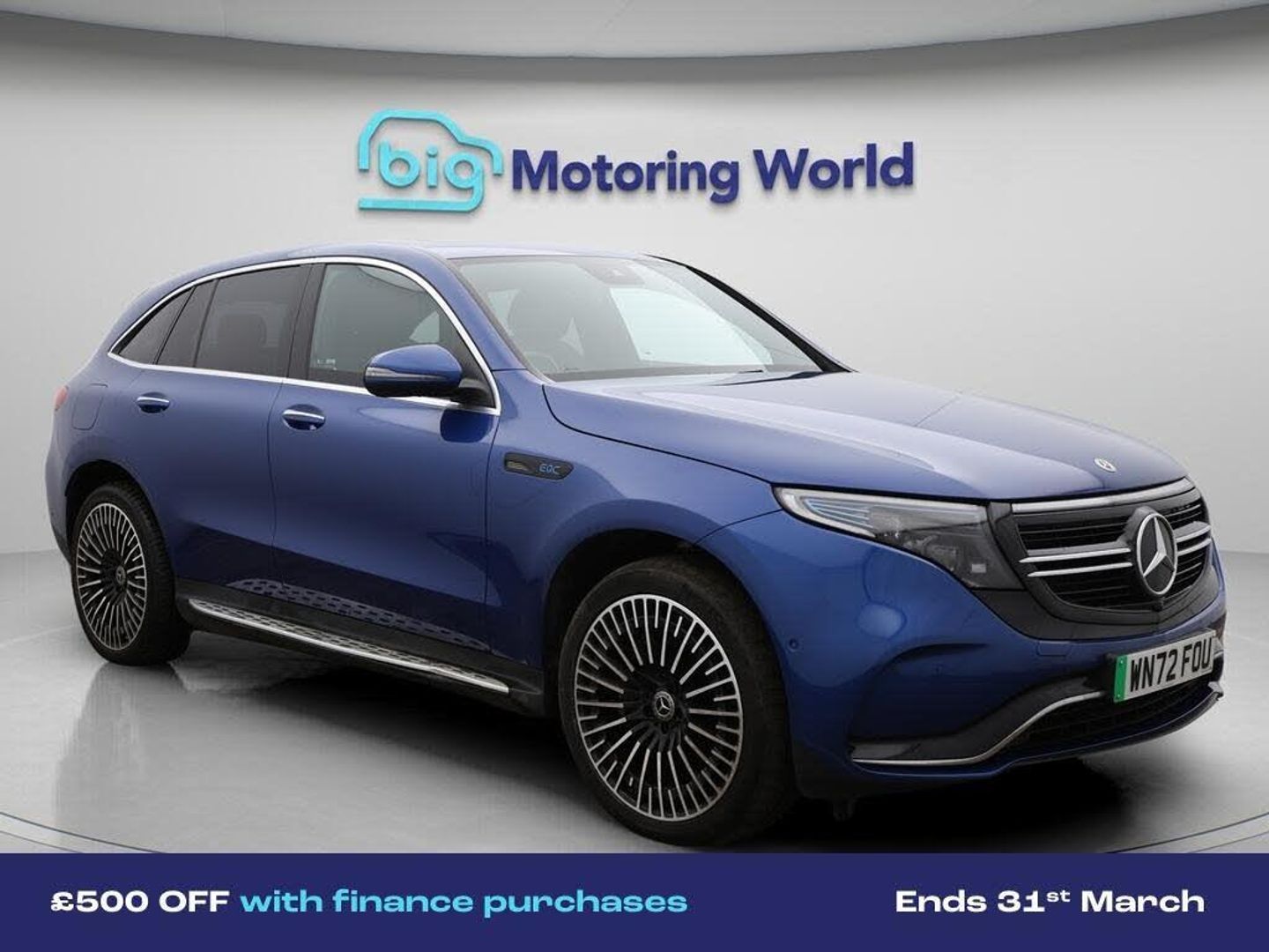 £500 towards your finance depo-Our Mercedes-Benz EQC comes with optional extras worth £715. Specification includes a range of fantastic features including £500 towards your finance deposit, Comfort Pack, All Wheel Drive, 21'' Alloy Wheels, Leather Seats, Air Suspension, Apple CarPlay, Lane Assist, AMG body styling, Parking Pack Specification information is supplied by CAPHPI and may vary to the actual car. This data does not form any part of a buying contact. Please check specification prior to purchase in-store. The MOT is valid until October 2026, visit bigmotoringworld.co.uk for more photos, a 360 tour, service history and a free HPI report.Were BIG on peace of mind and this Blue Mercedes-Benz EQC has completed our comprehensive 200 point inspection and passed all checks. Its ready for you to drive away with immediate collection in-store. We include a 90-day warranty as standard plus an option to extend for up to 3 years.Reserve this car exclusively for you, safely and securely at bigmotoringworld.co.uk, with a fully refundable £99 deposit. Test drive before you buy, with no commitment, no hassle and a completely haggle free experience. Still searching and want to see thousands more cars? We are BIG on choice with over 8000 cars to choose from.Visit our award winning web site bigmotoringworld.co.uk.Were Big Motoring World and were BIG on what matters to you.