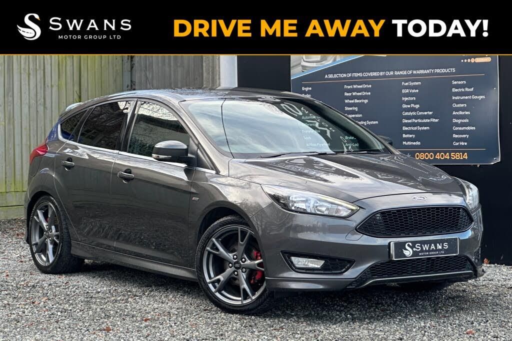 Features: 18in Alloy Wheels - ST-Line - Rock Metallic,Airbags - Driver and Front Passenger,Airbags - Front and Rear Side Curtain,Airbags - Front Side Impact,Alarm - Thatcham Category 1 with Volume Sensing and Perimeter,Anti-Lock Braking System - ABS with Electronic Brake Force Distribution - EBD,Automatic Dimming Rear View Mirror,Automatic Headlights,Black Exterior Trim Detailing including Upper Door Line and Headlamp Surround,Body Colour Large Rear Spoiler and Side Skirts,Body Coloured Front Styling Kit with Centre Aero Foil,Centre Console - Premium with Sliding Armrest - Covered Stowage Bins,Colour TFT Instrument Cluster Display,Courtesy Light - Front and Rear Passengers - Overhead Halogen and Load Compartment,Cruise Control with Active Speed Limiter,DEATC - Dual-Zone Electronic Automatic Temperature Control,Door Mirrors - Body Colour Housing - Heated Electrically Operated Power Fold - Integrated Side Indicator,Drivers Seat Lumbar Adjust,Electronic Stability Programme - ESP - with Traction Control and Emergency Brake Assist - EBA,Emergency Brake Warning - Automatic Hazard Warning Lights,EPAS - Electric Power Assisted Steering,Ford Easy-Fuel Capless Refuelling System,Ford Eco Mode - Driver Information System,Ford Power Starter Button,Ford SYNC3 DAB Navigation System,Front and Rear Floor Mats with Red Stitching,Front Fog Lights,Front Seat - Drivers Manual Height and Fore-Aft Adjustment,Front Seat - Passenger Manual Fore-Aft Adjustment,Front Seats - Sports Style,Front Suspension - Independent with MacPherson Struts and Anti-Roll Bar,Gearshift Knob - Leather,Halogen Headlights with Black Surround,Headlights - Courtesy Delay,Headliner - Black Woven,Hill Start Assist,IPS - Intelligent Protection System,Keyless Start,Leather-Trimmed Handbrake,LED Daytime Running Lights,Locking Wheel Nuts,MyKey,Parking Distance Sensors - Rear,Quickclear Heated Front Windscreen with Heated Washer Jets,Rain Sensitive Windshield Wipers,Rear Bumper with Integral Body Coloured Diffuser and Honeycomb Mesh in High-Gloss Black,Rear Lights - LED,Rear Privacy Glass,Rear Suspension - Independent Control Blade Multi-Link System and Anti-Roll Bar,Red Painted Brake Calipers,Red Stitched Handbrake and Steering Wheel,Remote Central-Double Locking,Seats - ISOFIX Mounting Provision for Child Seats,Spare Wheel - Mini Steel,Sports Style Pedals - Gear Knob and Steering Wheel,ST Line Stainless Steel Scuff Plates,Steering Column - Rake and Reach Adjustment,Steering Wheel - 3-spoke Flat Bottom - Leather Trimmed,Suspension - Sports,SYNC3 with 8in Touchscreen DAB Audio System,Trip Computer,TVC - Torque Vectoring Control,Tyre Pressure Monitoring System,Unique ST Rear Spoiler,Upper and Lower Grille - High Gloss Black Honeycomb Design,Windows - Electrically Operated Front and Rear with One Touch Lowering-Closing and Global Opening-Closing,Wipers - Standard with 6 Speed Interval Settings