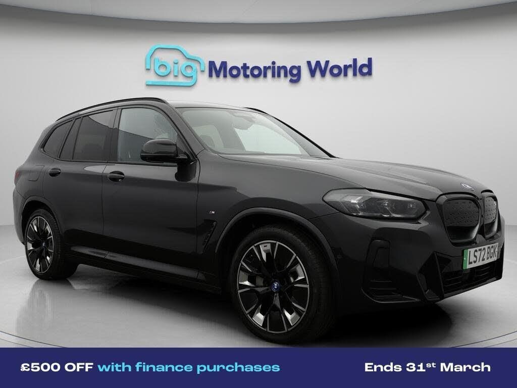 £500 towards your finance depo-Our BMW iX3 is finished in Grey. Specification includes a range of fantastic features including £500 towards your finance deposit, Sun Protection Pack, Head up Display, 20'' Alloy Wheels, Leather Seats, Adaptive Cruise Control, Electric Seats, Harman Kardon Speakers, Electric Panoramic Roof, M Sport Bodykit Specification information is supplied by CAPHPI and may vary to the actual car. This data does not form any part of a buying contact. Please check specification prior to purchase in-store. The MOT is valid until November 2026, visit bigmotoringworld.co.uk for more photos, a 360 tour, service history and a free HPI report.Were BIG on peace of mind and this Grey BMW iX3 has completed our comprehensive 200 point inspection and passed all checks. Its ready for you to drive away with immediate collection in-store. We include a 90-day warranty as standard plus an option to extend for up to 3 years.Reserve this car exclusively for you, safely and securely at bigmotoringworld.co.uk, with a fully refundable £99 deposit. Test drive before you buy, with no commitment, no hassle and a completely haggle free experience. Still searching and want to see thousands more cars? We are BIG on choice with over 8000 cars to choose from.Visit our award winning web site bigmotoringworld.co.uk.Were Big Motoring World and were BIG on what matters to you.