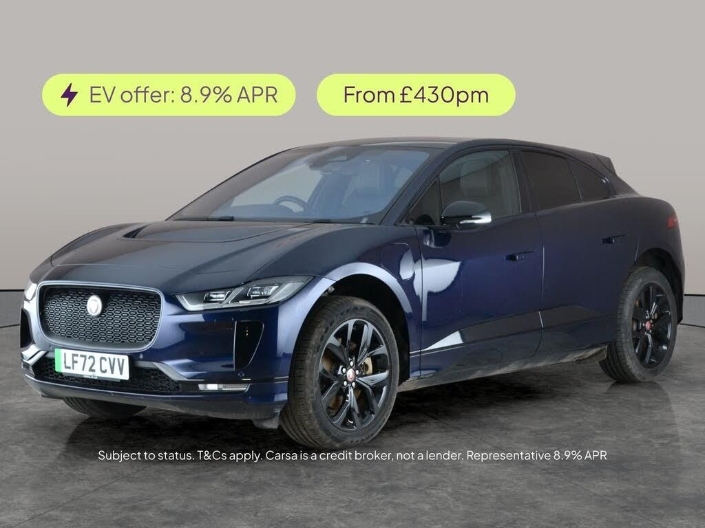 Experience the thrill of electric driving with this stylish blue Jaguar I-PACE. Enjoy a panoramic roof for an airy atmosphere, an upgraded Meridian audio system, and seamless Apple CarPlay integration. Stay comfortable with heated seats and a heated steering wheel, while LED headlights offer a modern touch. Safety features include Adaptive Cruise Control, Blind Spot Assist, Lane Departure Warning, and a handy reversing camera. Smart keyless entry and sat nav make every journey easy and enjoyable. 1 service recorded, last serviced on 03/01/2025 at 8,323 miles. MOT to 23/12/2026. Visit our website for service history, online valuation, full vehicle specification plus multiple images. This vehicle is VAT qualifying. Any feature/option specified here is from 3rd party data. We cannot guarantee the accuracy of any specification supplied by a 3rd party. We recommend that you physically check the specification of the vehicle on site prior to purchase. This information does not form part of the buying contract. Terms & Conditions apply. We have over 2,000 cars available from our 10 national branches, check our website to see all our stock. Our Trustpilot rating is 4.4/5 with over 9,000 reviews.