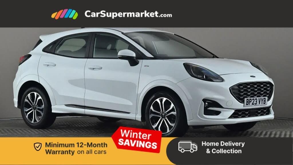 Driver impairment monitor,Emergency call service,Ford easy fuel,Full digital 12.3" instrument cluster,Lane keeping aid with lane departure warning,Power assist steering,Power start button,Rear parking sensor,Selectable drive modes(Normal, Eco, Sport, Slippery and Trail),Speed sign recognition,Sport suspension,Automatic headlights with auto high beam,Automatic rain sensing wipers,LED rear lamps,Power foldable heated door mirrors with puddle lamps,Projector headlamps with LED day time running lights and front fog lamps,Quickclear heated windscreen,Rear side wing doors,Rear wiper,ST-Line body styling kit with unique grille and large body colour rear spoiler,Third brake light,3 seat bench in 2nd row,Centre console with armrest and stowage,Ford megabox extended bootspace,Front and rear head restraints,Manual 2 way passenger seat adjustment,Manual 4 way driver seat adjust with lumbar adjustment,Single front passenger seat,ST- Line cloth trim with red stitching,ST-Line flat bottomed sensico leather steering wheel with leather handbrake and aluminium gear knob,Ford SYNC 3 navigation pack - Puma,3 rear seatbelts,Child safety lock,Electronic stability control (ESC) and hill start assist,Pedestrian/cyclist detection & post-collision braking,Pre collision assist system,Tyre pressure monitoring system (TPMS),Thatcham alarm,Cloth - Black with Red Stitching,Frozen White