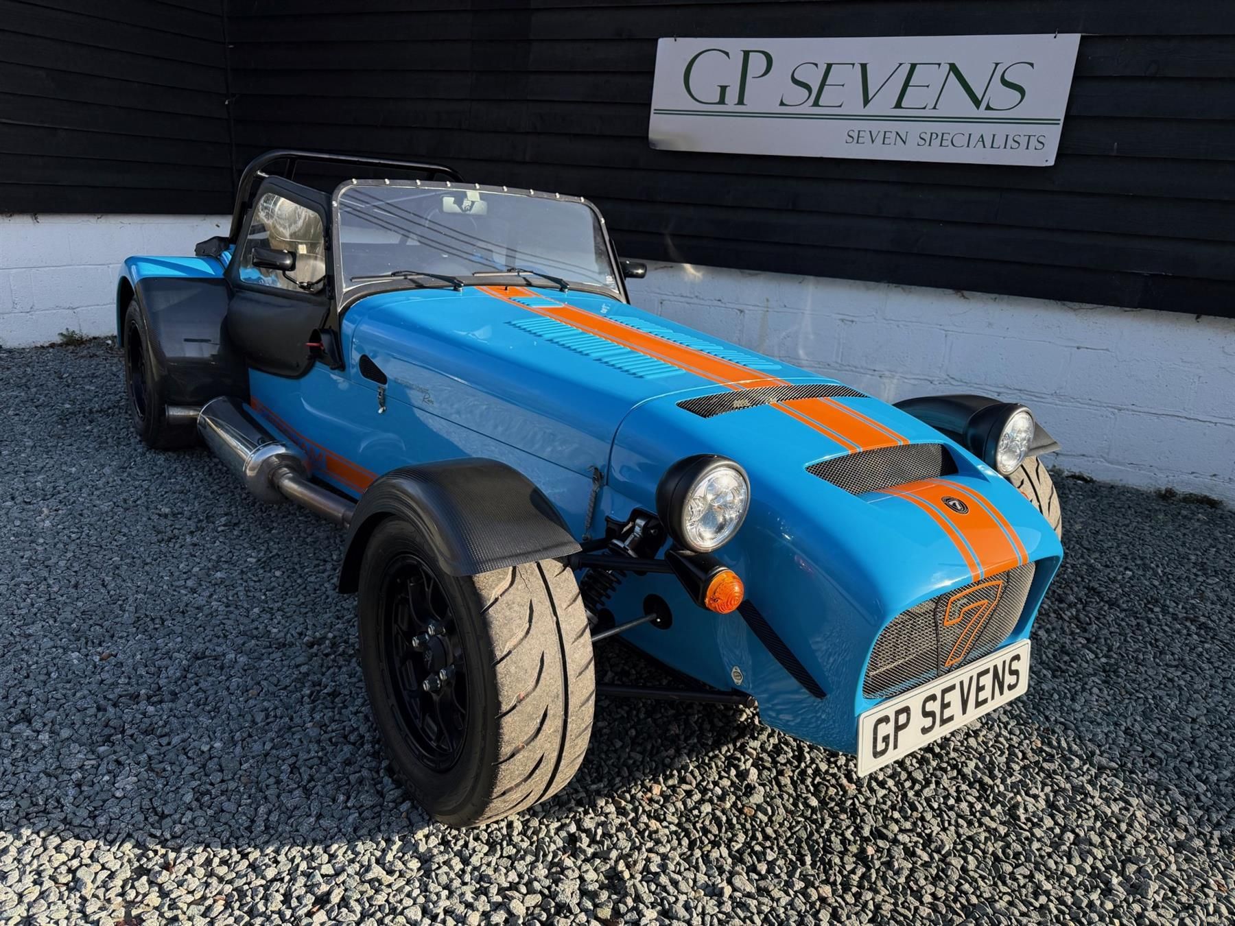 * Finished in Riviera Blue with Orange decals and desirable upgrades such a Front and Rear LED Lights, 220bhp 'Throttle Bodies', 620 Nosecone and Painted Orange Uprated Brake Callipers, its a very capable, fast and good looking Caterham!