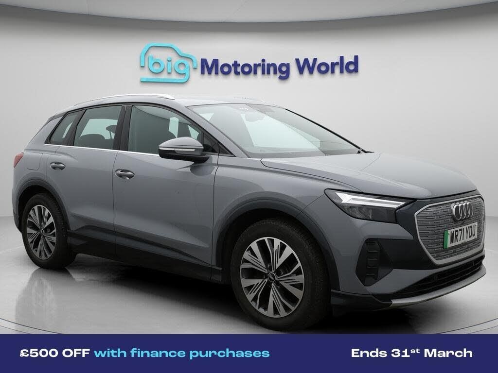 £500 towards your finance depo-Our Audi Q4 e-tron is finished in Grey. Specification includes a range of fantastic features including £500 towards your finance deposit, 19'' Alloy wheels, Lane Assist, Satellite Navigation, Heated Seats, Bluetooth, Parking Sensors, Audi Connect, 3 Zone Climate, Cruise Control Specification information is supplied by CAPHPI and may vary to the actual car. This data does not form any part of a buying contact. Please check specification prior to purchase in-store. The MOT is valid until December 2026, visit bigmotoringworld.co.uk for more photos, a 360 tour, service history and a free HPI report.Were BIG on peace of mind and this Grey Audi Q4 e-tron has completed our comprehensive 200 point inspection and passed all checks. Its ready for you to drive away with immediate collection in-store. We include a 90-day warranty as standard plus an option to extend for up to 3 years.Reserve this car exclusively for you, safely and securely at bigmotoringworld.co.uk, with a fully refundable £99 deposit. Test drive before you buy, with no commitment, no hassle and a completely haggle free experience. Still searching and want to see thousands more cars? We are BIG on choice with over 8000 cars to choose from.Visit our award winning web site bigmotoringworld.co.uk.Were Big Motoring World and were BIG on what matters to you.