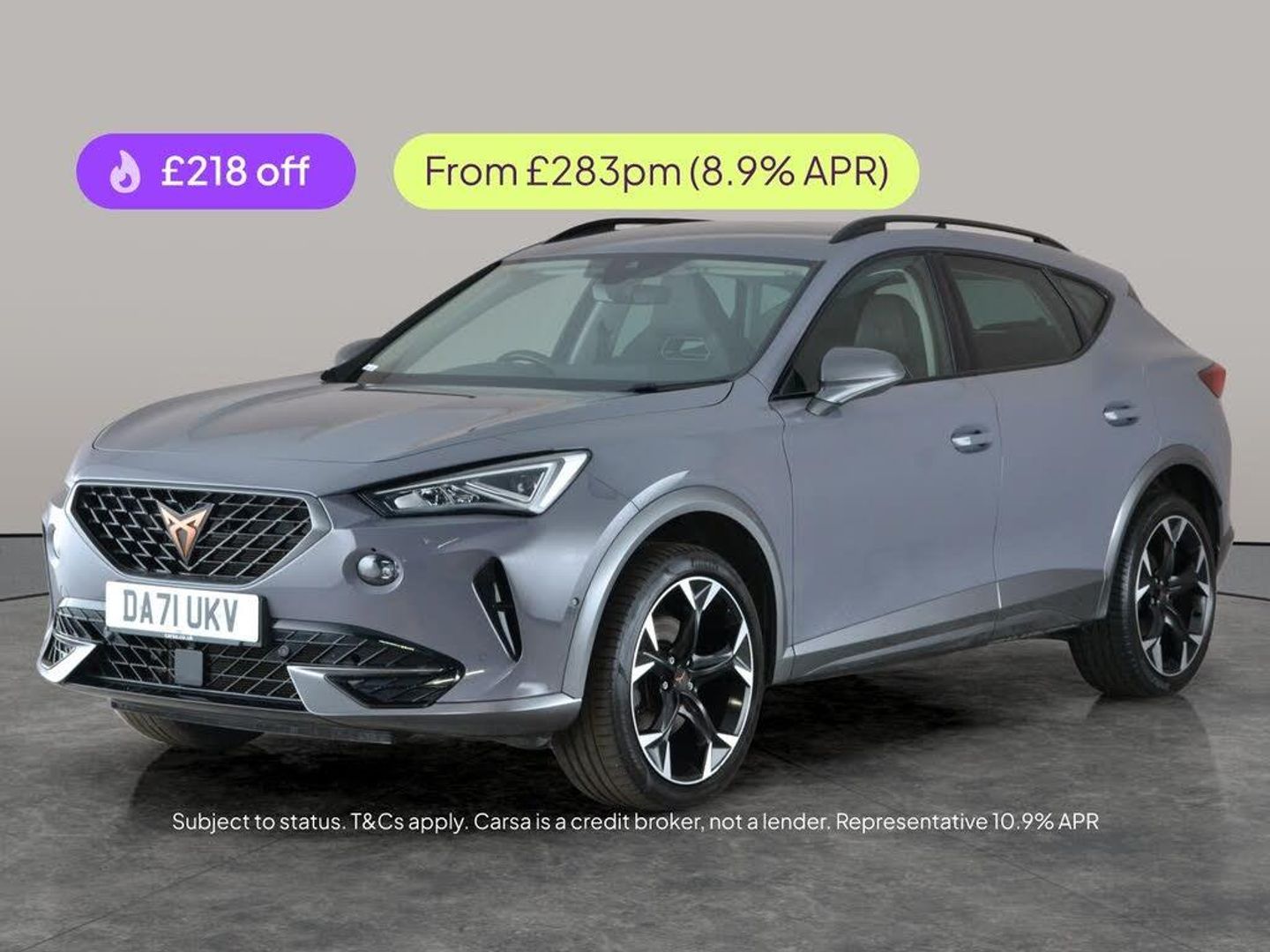 Discover the dynamic Cupra Formentor with luxurious heated leather seats, driver memory function, and electric seat adjustment. Enjoy effortless connectivity with Apple CarPlay and Bluetooth audio streaming, while the heated steering wheel adds comfort in any climate. Stay safe and confident with Adaptive Cruise Control, Park Assist, a reversing camera, and bright LED headlights. With keyless entry and sat nav at your fingertips, this stylish grey Formentor blends sporty sophistication with everyday practicality. 2 services recorded, last serviced on 15/08/2025 at 21,826 miles. MOT to 15/01/2027. Visit our website for service history, online valuation, full vehicle specification plus multiple images. This vehicle is VAT qualifying. Any feature/option specified here is from 3rd party data. We cannot guarantee the accuracy of any specification supplied by a 3rd party. We recommend that you physically check the specification of the vehicle on site prior to purchase. This information does not form part of the buying contract. Terms & Conditions apply. We have over 2,000 cars available from our 10 national branches, check our website to see all our stock. Our Trustpilot rating is 4.4/5 with over 9,000 reviews.
