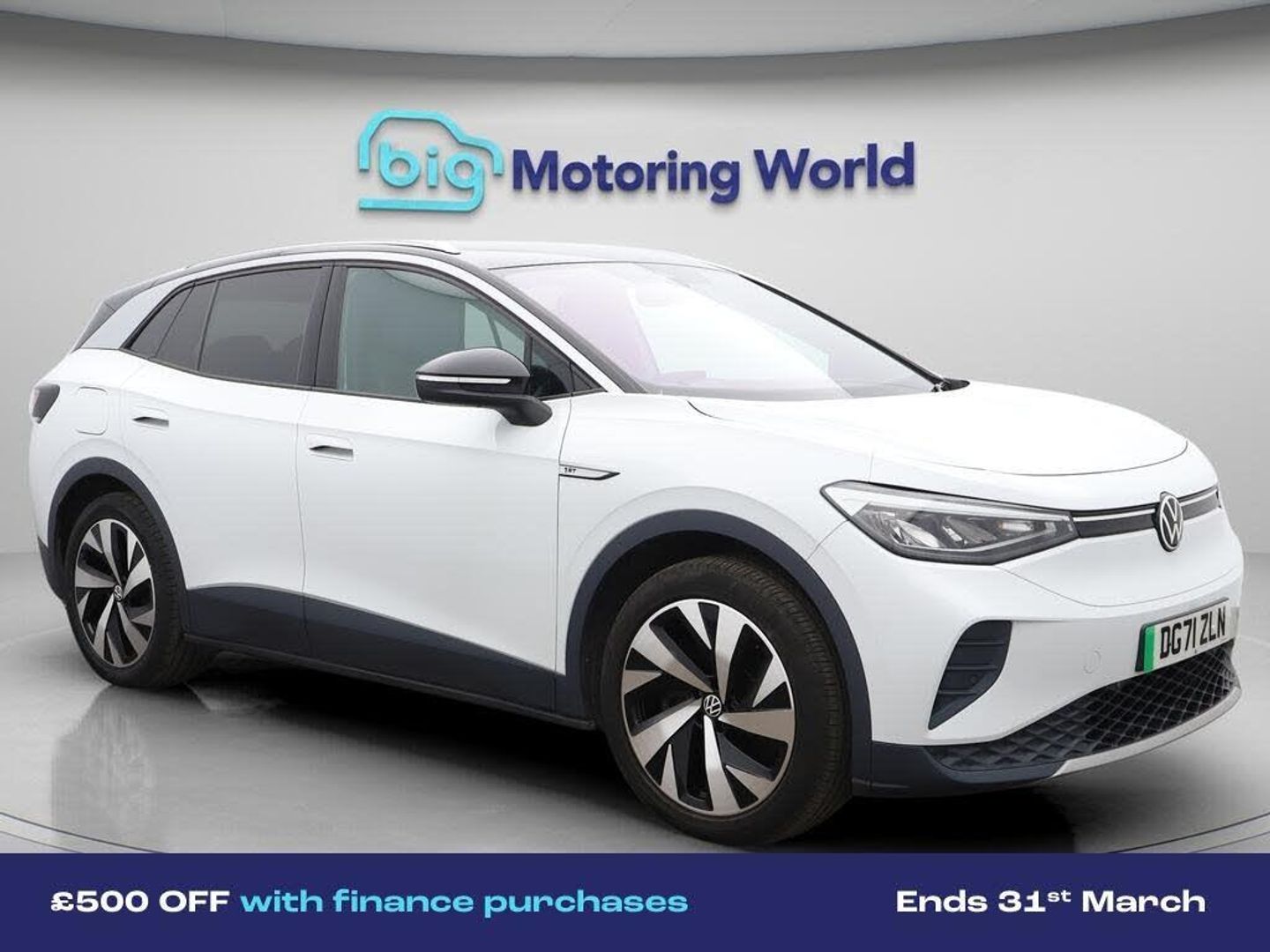 £500 towards your finance depo-Our Volkswagen ID.4 is finished in White. Specification includes a range of fantastic features including £500 towards your finance deposit, 20'' Alloy Wheels, Part Leather Seats, Apple CarPlay, Adaptive Cruise Control, Android Auto, Privacy Glass, Heated Seats, Rear View Camera, Heated Steering Wheel Specification information is supplied by CAPHPI and may vary to the actual car. This data does not form any part of a buying contact. Please check specification prior to purchase in-store. The MOT is valid until October 2026, visit bigmotoringworld.co.uk for more photos, a 360 tour, service history and a free HPI report.Were BIG on peace of mind and this White Volkswagen ID.4 has completed our comprehensive 200 point inspection and passed all checks. Its ready for you to drive away with immediate collection in-store. We include a 90-day warranty as standard plus an option to extend for up to 3 years.Reserve this car exclusively for you, safely and securely at bigmotoringworld.co.uk, with a fully refundable £99 deposit. Test drive before you buy, with no commitment, no hassle and a completely haggle free experience. Still searching and want to see thousands more cars? We are BIG on choice with over 8000 cars to choose from.Visit our award winning web site bigmotoringworld.co.uk.Were Big Motoring World and were BIG on what matters to you.