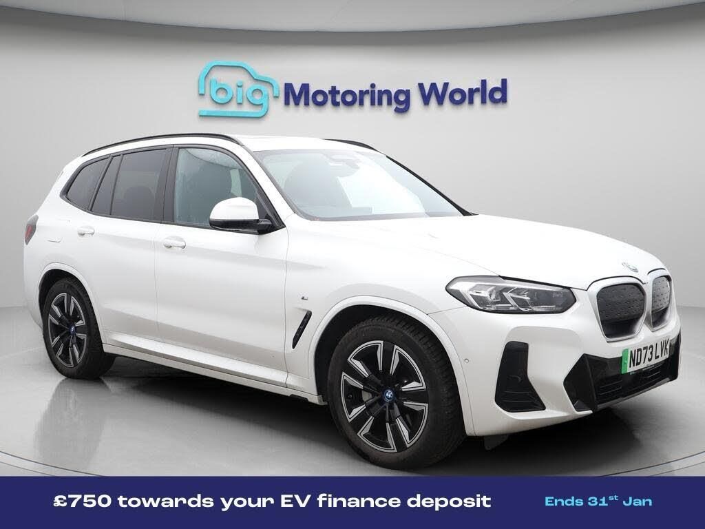 £750 towards your finance depo-Our BMW iX3 is finished in White. Specification includes a range of fantastic features including £750 towards your finance deposit, Sun Protection Pack, 19'' Alloy wheels, Leather Seats, Apple CarPlay, Adaptive Cruise Control, Electric Seats, Electric Panoramic Roof, M Sport Bodykit, Android Auto Specification information is supplied by CAPHPI and may vary to the actual car. This data does not form any part of a buying contact. Please check specification prior to purchase in-store. The MOT is valid until November 2026, visit bigmotoringworld.co.uk for more photos, a 360 tour, service history and a free HPI report.Were BIG on peace of mind and this White BMW iX3 has completed our comprehensive 200 point inspection and passed all checks. Its ready for you to drive away with immediate collection in-store. We include a 90-day warranty as standard plus an option to extend for up to 3 years.Reserve this car exclusively for you, safely and securely at bigmotoringworld.co.uk, with a fully refundable £99 deposit. Test drive before you buy, with no commitment, no hassle and a completely haggle free experience. Still searching and want to see thousands more cars? We are BIG on choice with over 8000 cars to choose from.Visit our award winning web site bigmotoringworld.co.uk.Were Big Motoring World and were BIG on what matters to you.
