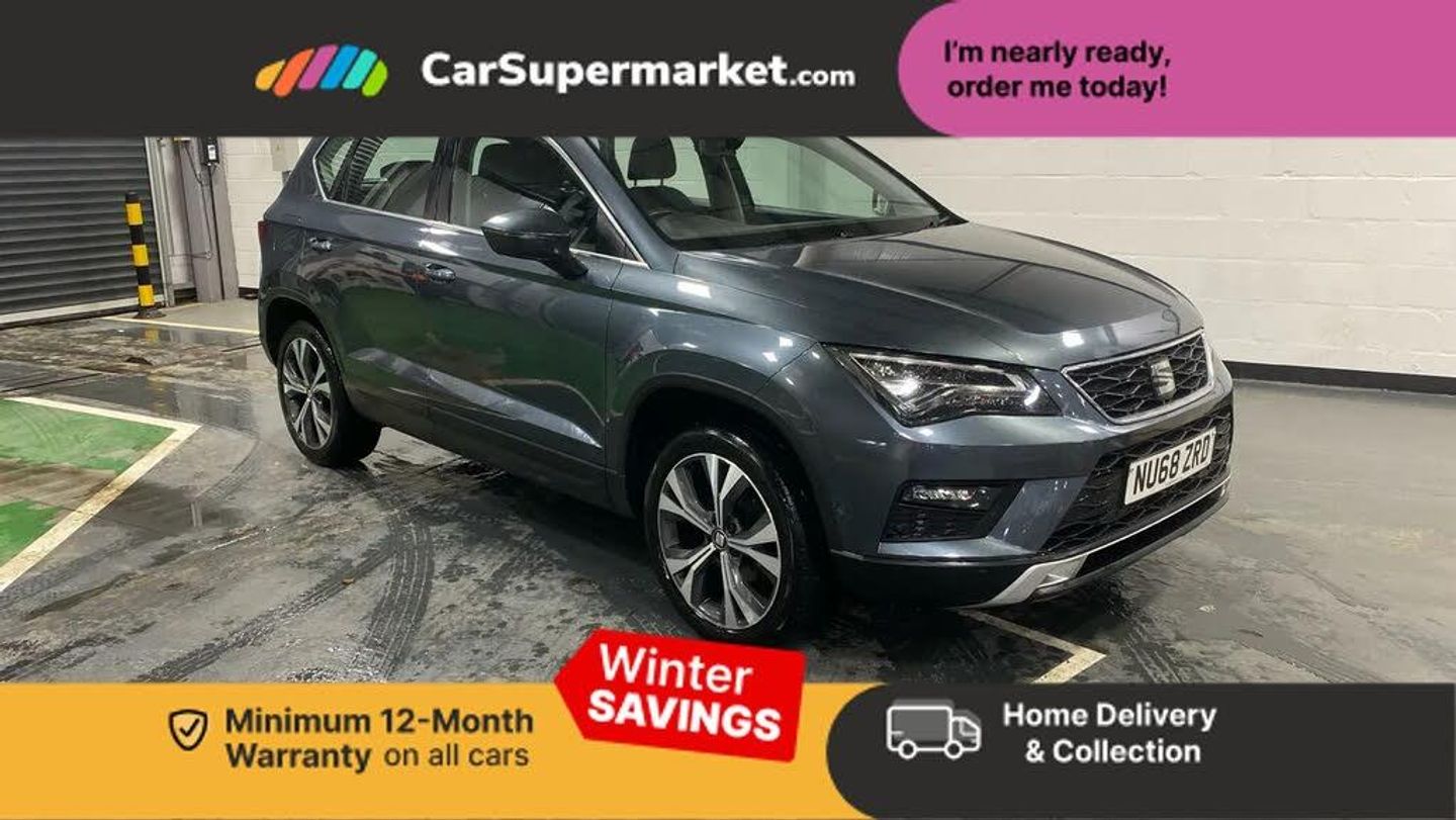 'Lights On' Reminder warning buzzer,3.5" driver's display,8.0" colour touchscreen with proximity sensor,Cruise control,Digital clock,Driver alert system,Electric speed sensitive power steering,Full Link Smartphone Integration with Mirror Link, Apple Car Play, Google Android Auto,Low fuel warning light,Multi function display,Outside temperature gauge,Park assist system with steering assist,Remote fuel flap release,RPM counter,Satellite navigation system,SEAT Drive profile,SEAT logo boot release,Self parking functionality (includes front and rear parking sensors),Trip computer,Comfort suspension,XDS electronic differential lock,SEAT USB media cable,Steering wheel mounted audio/phone controls,Automatic headlights,Black wheel arch extensions,Body colour bumpers,Body colour door handles,Body colour door mirrors,Chrome headlight surround,Chrome roof rails,Chrome side window trim,Chromed centre radiator grille surround,Electric folding door mirrors,Electrically adjustable and heated door mirrors,Front and rear electric windows,Full LED headlights,Hidden exhaust pipe,LED daytime running lights,LED front fog lights with static cornering light function,LED Headlights,LED tail lights,Matt black radiator grille,Rear fog lights,Rear wash/wipe,Tinted windows,Welcome lighting,12V power point front,3 height adjustable rear headrests,4 Lashing eyes in boot,60/40 split folding rear seat,Active head restraints,Adjustable front armrest with storage compartment,Ambient lighting,Cloth upholstery,Comfort front seats,Driver sunvisor with covered mirror + card holder,Driver/passenger lumbar adjustment,Driver/passenger sunvisors with illuminated vanity mirrors,Dual zone climate control,Footwell illumination,Front courtesy lights,Front cupholders,Front reading lights,Front seat back storage pockets,Gear shift indicator,Height adjustable driver's seat,Height adjustable front headrests,Height adjustable passenger seat,Illuminated boot,Illuminated glovebox,Instrument lighting with brightness control,Isofix child seat preparation,Leather steering wheel and gear knob,Rear armrest,Rear central air outlet,Rear reading lights,Storage box under drivers seat,Navigation system pack - Ateca,3x3 point rear seatbelts,ABS,Auto hold function,Automatic post collision braking,Driver/Front Passenger airbags,Drivers knee airbag,Electronic parking brake,Electronic stability control,ESP+EBA,Front and rear seatbelt reminder,Front assist including city emergency braking,Front passenger airbag deactivation,Front side airbags,Hill hold control,Predictive pedestrian protection,Tiredness recognition system,Traction control,Twin curtain airbags,Tyre pressure monitoring system,Immobiliser,Locking wheel bolts,Remote central locking,Volumetric alarm with back up horn,Chrome effect dashboard facia,18" Performance machined alloy wheels 36/2