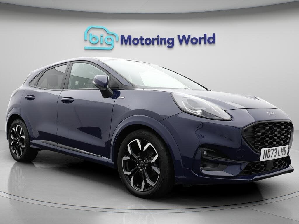 Part Leather Seats,Lane Assist-Our Ford Puma is finished in Blue. Specification includes a range of fantastic features including Part Leather Seats, Lane Assist, Satellite Navigation, Ford SYNC, Privacy Glass, ST Style Pack, Heated Seats, Heated Windscreen, Heated Steering Wheel, Bluetooth Specification information is supplied by CAPHPI and may vary to the actual car. This data does not form any part of a buying contact. Please check specification prior to purchase in-store. The MOT is valid until October 2026, visit bigmotoringworld.co.uk for more photos, a 360 tour, service history and a free HPI report.Were BIG on peace of mind and this Blue Ford Puma has completed our comprehensive 200 point inspection and passed all checks. Its ready for you to drive away with immediate collection in-store. We include a 90-day warranty as standard plus an option to extend for up to 3 years.Reserve this car exclusively for you, safely and securely at bigmotoringworld.co.uk, with a fully refundable £99 deposit. Test drive before you buy, with no commitment, no hassle and a completely haggle free experience. Still searching and want to see thousands more cars? We are BIG on choice with over 8000 cars to choose from.Visit our award winning web site bigmotoringworld.co.uk.Were Big Motoring World and were BIG on what matters to you.