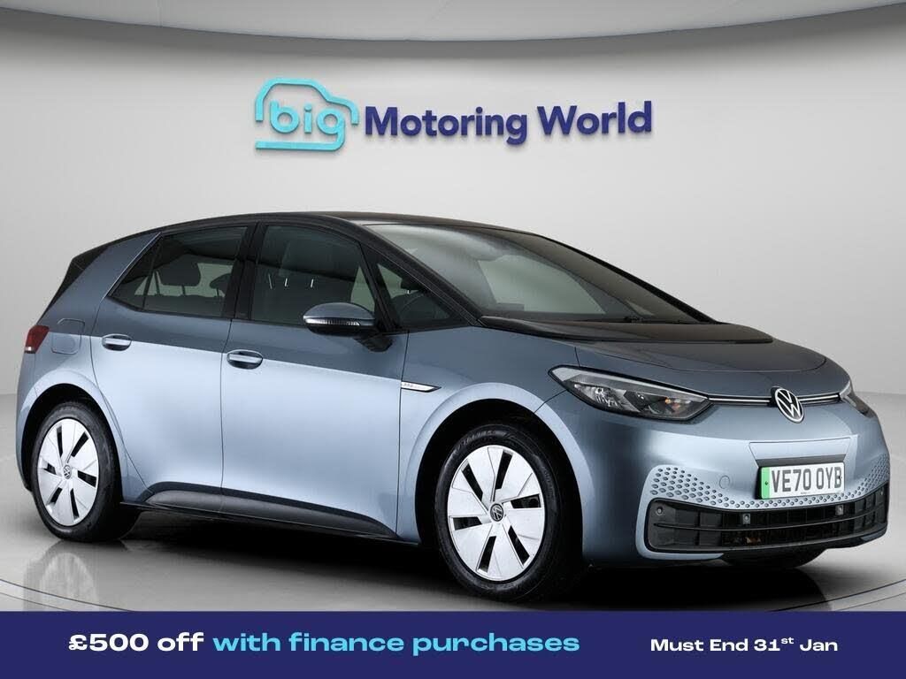 £500 towards your finance depo-Our Volkswagen ID.3 is finished in Blue. Specification includes a range of fantastic features including £500 towards your finance deposit, Apple CarPlay, Adaptive Cruise Control, Lane Assist, Android Auto, Satellite Navigation, Heated Seats, Heated Steering Wheel, Bluetooth, Blind Spot Assist Specification information is supplied by CAPHPI and may vary to the actual car. This data does not form any part of a buying contact. Please check specification prior to purchase in-store. The MOT is valid until August 2026, visit bigmotoringworld.co.uk for more photos, a 360 tour, service history and a free HPI report.Were BIG on peace of mind and this Blue Volkswagen ID.3 has completed our comprehensive 200 point inspection and passed all checks. Its ready for you to drive away with immediate collection in-store. We include a 90-day warranty as standard plus an option to extend for up to 3 years.Reserve this car exclusively for you, safely and securely at bigmotoringworld.co.uk, with a fully refundable £99 deposit. Test drive before you buy, with no commitment, no hassle and a completely haggle free experience. Still searching and want to see thousands more cars? We are BIG on choice with over 8000 cars to choose from.Visit our award winning web site bigmotoringworld.co.uk.Were Big Motoring World and were BIG on what matters to you.