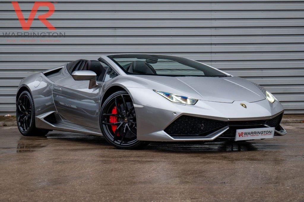 Here at VR EPS Warrington, we are pleased to offer the stunning 2017 Lamborghini Huracan 5.2 V10 LP 610-4 Spyder 2dr Petrol LDF 4WD finished in Grigio Antares with Uni-Colour Sportivo Nero Ade Leather and Alcantara. First registered in January 2017, this vehicle has 7 previous owners and comes with... 20" Mima Rims in Gloss Black | Fully Electric and Heated Seats | Magneto Rheological Suspension | Lifting System | Sports Exhaust | Bluetooth | Front and Rear Park Assist | Rear View Camera | Style Package | DAB | Navigation | Floor Mats with Leather Piping and Double Stitching | Roof Lining and A Pillars in Alcantara | Branding Package | MF Steering Wheel in Smooth Leather | Stitching in Rosso Alala | Callipers in Red | At VR EPS Warrington you can enjoy a buying experience like no other! You can either... Visit our Boutique showroom in Warrington Cheshire or order directly through our website and arrange delivery to your door. Or as most of our customers have done… Do both!! Our talented team of advisors are available to provide their knowledge and match you to your dream car. All our cars are supplied with two keys, an 82-point vehicle inspection, 6 months fully comprehensive RAC Warranty, and 12 months RAC roadside assistance. 10.4%APR AVAILABLE ON THIS CAR. Bluetooth Preparation - Hands Free Profile,Lifting System and Magneto-Rheological Suspension,Carbon Ceramic Brakes with Red Painted Brake Calipers,DAB - Digital Audio Broadcasting Tuner,Unicolour Leather - Nero Ade,Evo Sportivo Alcantara Unicolour - Nero Ade,Front and Rear Parking Sensors and Rear View Camera,Rooflining and A-Pillars in Alcantara,Branding Package,Floor Mats with Leather Piping and Double Stitching,Multi Function Steering Wheel in Suede Leather,Style Package,Sport Exhaust System,20in Alloy Wheels - Rims Mimas Forged High Gloss Black,20in Alloy Wheels - Rims Giano Silver,3-points Seat Belts with Pre-tensioner-Force Limiters and Height Adjustment,4 Speakers - 2 Woofers and 2 Tweeters,Airbag - Front Dual Stage Driver,Airbag - Front Dual Stage Passenger,Alcantara Multilayer on Upper Dashboard and Upper Central Door Panel,Autolock,Automatic Dual-Zone Air Conditioning System with Integrated Active Carbon Filter,Carbon Ceramic Brakes with Silver Painted Brake Calipers,Collapsible Steering Column,Colo