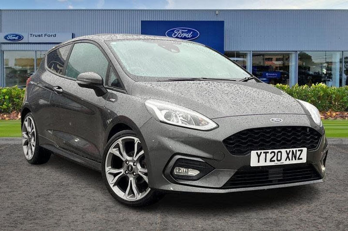 4.2 TFT instrument cluster screen, Bluetooth system, Electric power steering, Ford easy fuel, Rear parking distance sensors, Traffic sign recognition, Trip computer, Auto high beam, Body colour bumpers, Body colour door handles, Body colour large rear spoiler, Body coloured electrically operated and heated door mirrors with side indicators, Cornering front fog lights, Electric front windows/one touch facility, LED Night signature to rear lights, Power foldable door mirrors with puddle lights, Quickclear heated windscreen, Rain sensing wipers and auto dimming rear view mirror, Rear privacy glass, Rear wiper, Unique ST-Line upper grille & full bodystyling kit with ST-Line wing badges, 12V Accessory socket in centre console, 3 spoke flat bottomed leather steering wheel, 60/40 split folding rear seat, Adjustable head restraints, Black headlining, Boot carpet, Centre console with armrest and illuminated cupholders, Chrome inner door handles, Drivers and Passenger lumbar support, EATC - Electronic Auto Temperature control, Footwell illumination, Front map reading lights, Front seat and rear pockets, Front/rear floor mats, Height adjustable driver's seat, Height adjustable passenger seat, Illuminated glovebox, LED ambient lighting, Load area light, Overhead console with sunglasses holder, Pollen filter, Rake/reach adjustable steering wheel, Sensico wrapped handbrake and gearknob, Sports front seats, Sports pedals, 3 point seatbelts on all rear seats, ABS+EBA, Curtain airbags, Driver and passenger airbags, Drivers knee airbag, Electronic stability control with hill start assist, Front passenger airbag deactivation, Front side airbags, Seatbelt warning, Two tone horn, Tyre pressure monitoring system