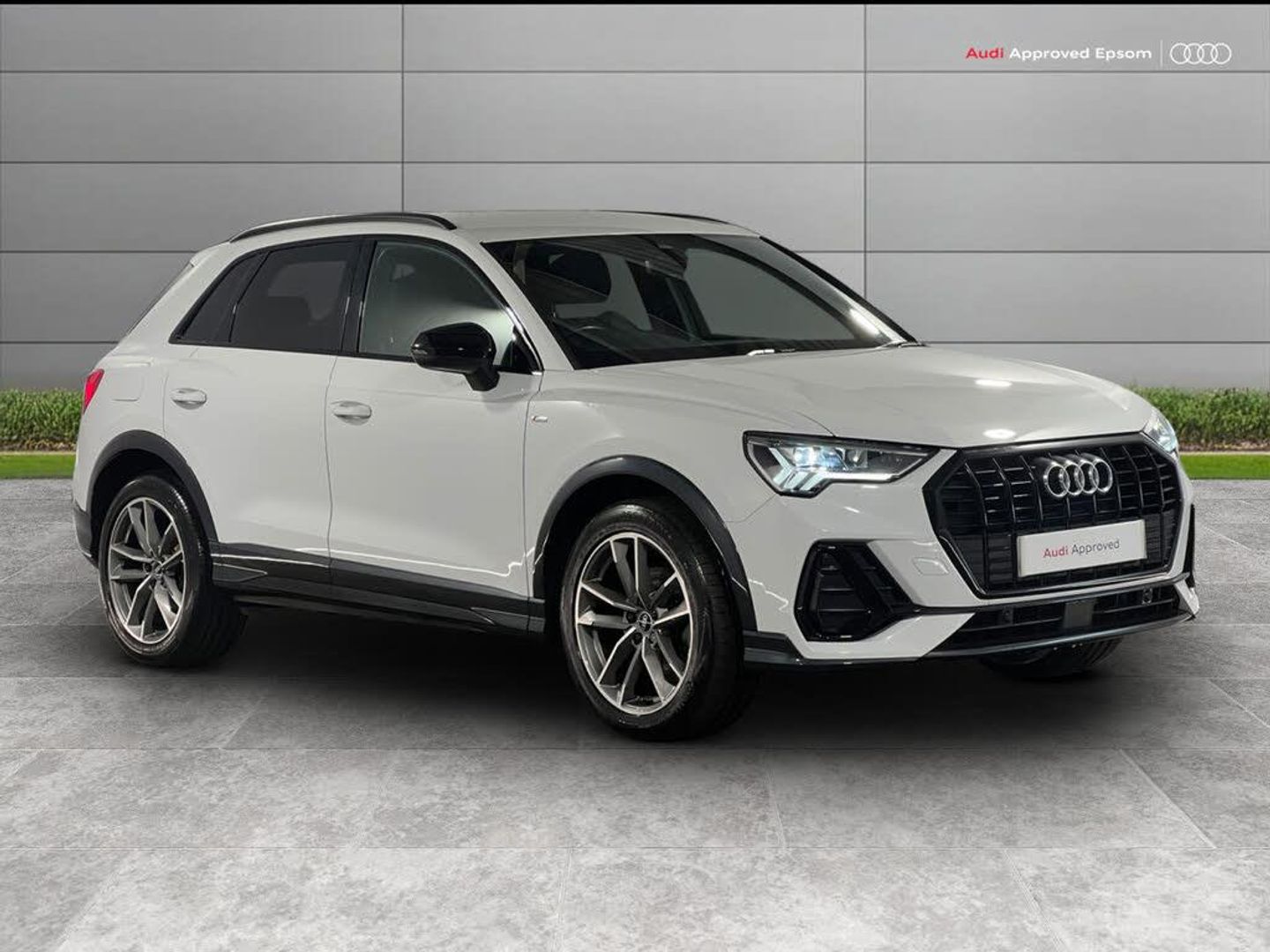Amazon alexa Integration, Audi connect safety and service (e-call), Audi drive select, Audi lane departure warning, Audi Virtual Cockpit - 10.25" display, Bluetooth interface, Camera based traffic sign recognition, MMI Navigation Plus with high resolution 10.1 inch touchscreen colour display, Power operated tailgate, Progressive steering, Service interval indicator, Smartphone interface includes wireless Apple carplay/Android Auto, Start stop system with recuperation, Voice control system with natural language interaction, 48V Mild hybrid technology, Sports suspension, 2 USB-C ports with charge and data functions, 6 passive loudspeakers, DAB digital radio module, Acoustic windscreen, Auto dimming frameless rear view mirror, Black roof rails, Electrically folding, adjustable and heated door mirrors with integrated LED side indicators and kerb view function for passenger side, Front and rear electric windows, Front fog lights, Grille vertical bars in aluminium silver/Matt, High gloss black finish B and C pillars, LED headlights with LED daytime running lights and dynamic rear indicator, LED rear lights, Privacy glass dark tinted rear and rear-side windows (from B-pillar backwards), Rain and light sensors, Rear diffuser strip in matt titanium black, S line bumpers in contrasting Manhattan grey, 12V socket in rear centre console, 40:20:40 folding with manual adjustment for 60:40 forwards/backwards position and backrest angle, Adjustable rear seat bench/backrest with centre armrest and cupholder, Black cloth headlining, Dual zone electronic climate control, Front and rear black floor mats with contrast stitching in rock grey, Front and rear headrests, Front and rear roof module including reading lights, Front centre armrest, Glove compartment lighting, Height and reach adjustable steering wheel, Illuminated door sill trims with S logo, ISOFIX child seat mounting for front passenger with airbag deactivation and outer rear seat including top tether attachment point for outer rear seats, Luggage compartment light, Manual front seats with height adjustment, Perforated leather gearknob, Stainless steel luggage compartment sill finisher, Stainless steel pedals, Black styling pack - Q3, Non smoking pack - Q3, 3x3 point rear seatbelts, 6 airbags - Driver, front passenger, curtain and side windows, Audi pre-sense front with pedestrain and cyclist recognition, Electrically operated child locks on rear doors, Electromechanical parking brake, Electronic stabilisation control including ABS, ASR and EDL, Hill descent control, Hill hold assist, Pre sense basic, Seatbelt monitoring, Tyre pressure warning, Warning triangle and first aid kit, Anti theft alarm, Anti theft wheel bolts, Remote central locking, Detail dashboard around MMI touch colour display in glass look, black with surround in aluminium look, Leatherette door armrest, Piano black inlay, Tool kit, Tyre repair kit