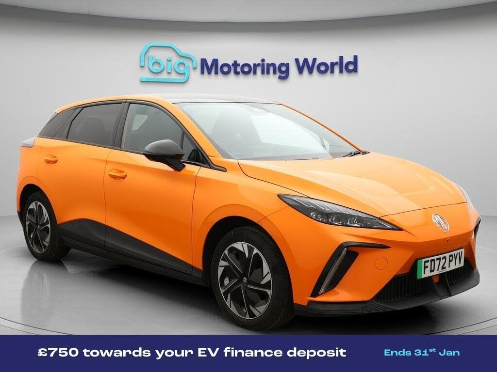 £750 towards your finance depo-Our MG MG4 is finished in Orange. Specification includes a range of fantastic features including £750 towards your finance deposit, 18'' alloy wheels, Apple CarPlay, Adaptive Cruise Control, Lane Assist, Android Auto, Privacy Glass, Heated Seats, Rear View Camera, Heated Steering Wheel Specification information is supplied by CAPHPI and may vary to the actual car. This data does not form any part of a buying contact. Please check specification prior to purchase in-store. The MOT is valid until January 2027, visit bigmotoringworld.co.uk for more photos, a 360 tour, service history and a free HPI report.Were BIG on peace of mind and this Orange MG MG4 has completed our comprehensive 200 point inspection and passed all checks. Its ready for you to drive away with immediate collection in-store. We include a 90-day warranty as standard plus an option to extend for up to 3 years.Reserve this car exclusively for you, safely and securely at bigmotoringworld.co.uk, with a fully refundable £99 deposit. Test drive before you buy, with no commitment, no hassle and a completely haggle free experience. Still searching and want to see thousands more cars? We are BIG on choice with over 8000 cars to choose from.Visit our award winning web site bigmotoringworld.co.uk.Were Big Motoring World and were BIG on what matters to you.