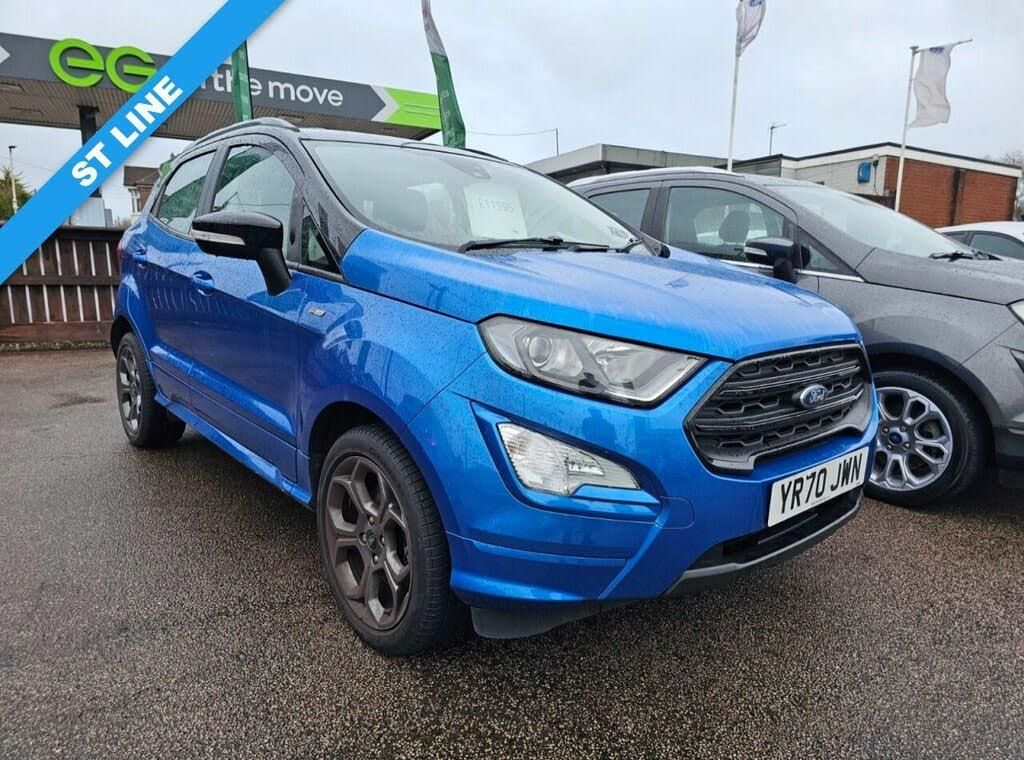 This 2020 Ford EcoSport ST-Line is a smart, sporty compact SUV that's ideal for drivers who want practicality without sacrificing style or driving enjoyment. Finished in the striking Deep Impact Blue with piano black roof, it looks fantastic on the road and benefits from the ST-Line styling pack, giving it a more athletic stance and a premium feel inside and out. With a full service history, this EcoSport has clearly been well cared for and is ready for its next owner. Under the bonnet is Ford's impressive 1.0-litre EcoBoost petrol engine, producing 125 PS. It delivers a great balance of performance and efficiency, making it just as comfortable on the motorway as it is around town. The manual gearbox is smooth and engaging, while the Euro 6 engine with stop/start helps keep running costs and emissions low. The raised driving position offers excellent visibility, and the compact size makes parking and urban driving easy. Ownership of the EcoSport ST-Line brings plenty of everyday benefits. The interior is comfortable and well equipped, with sporty ST-Line touches, supportive seats, and modern technology designed to make every journey more enjoyable. Practicality hasn't been forgotten either, with a versatile boot and flexible rear seating that's perfect for shopping, weekends away, or family life. Key features and highlights include: ST-Line trim with sporty exterior and interior styling Manual transmission Euro 6 compliant with stop/start technology Full service history SUV driving position with compact, easy-to-drive dimensions Stylish Deep Impact Blue paintwork Overall, this Ford EcoSport ST-Line is a great choice for anyone looking for a reliable, economical, and stylish SUV with a sporty edge and a proven service record. "Making Car Buying Simple Enjoyable and Stress Free" Accuracy of Information: While every effort is made to ensure the accuracy of vehicle specifications and details provided in this advertisement, errors, inaccuracies, or omissions may occur. Customers are advised to verify all information directly with the dealership. The features, specifications, options, and accessories described in this advertisement are based on the latest available information at the time of publication.