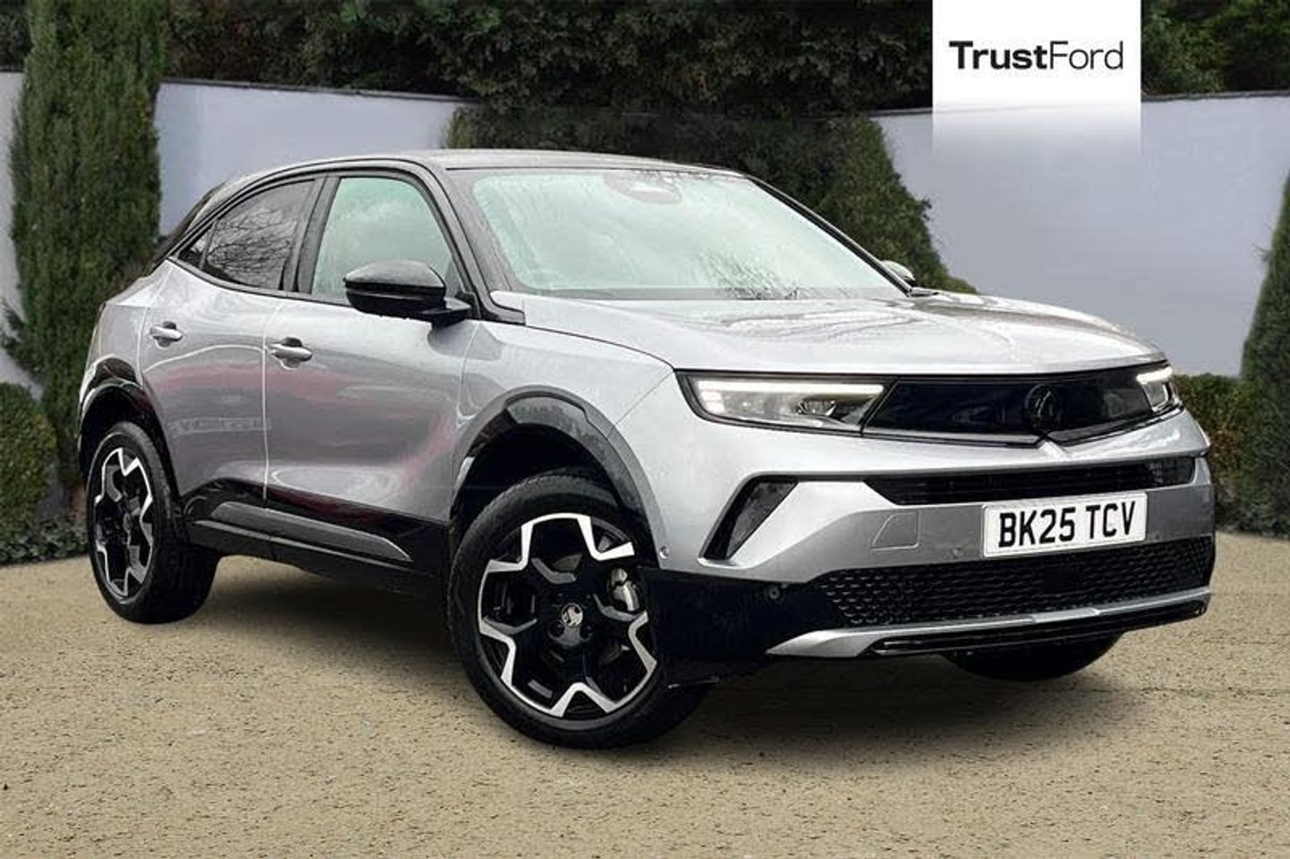 10 digital instrument cluster, Active drive assist plus, Adaptive cruise control, Digital instrumentation with digital speedometer, rev counter, fuel and water temperature gauge, Drive mode selector, Driver attention alert, Driver drowsiness alert system, Driver information display with multi function trip computer, audio info, digital clock and outside air temperature with ice warning function, Front and rear parking distance sensors, Lane keep assist system (LAS) with Lane departure warning system (LDWS), Lane positioning assist, Lights on audible warning, Panoramic rear view camera, Power assisted speed sensitive steering, RDS with traffic programme, Side blind spot alert and flank guard, Speech recognition, Speed sign recognition, Start/stop system, Vauxhall connect with e-Call, WiFi connectivity, Wireless phone projection with Apple CarPlay and Android Auto, Adaptive brake lights, Automatic headlamp levelling, Automatic high beam assist, Automatic lighting control with tunnel detection, Black DLO, Black door mirror housings, Black grained plastic door and wheel arch claddings, Black grained plastic front and rear bumper inserts, Black Griffin logo and vizor frame, Black lettering and emblems, Black upper window moulding, Body colour door handles, Body colour front and rear bumpers, Body colour skid plates, Dark tinted rear windows, Electrically adjustable and heated door mirrors, Electrically foldable door mirrors, Electrically operated front and rear windows with safety auto reverse and one touch up/down facility, Electrochromatic frameless auto dimming rear view mirror, Hazard warning lights, Heated rear window+rear wash/wipe, Integrated black tailgate spoiler, IntelliLux matrix headlights with advanced forward lightning and anti glare beam, LED 3rd brake light, LED daytime running lights, LED side repeat indicators, LED tail lights, Rain sensitive windscreen wipers, Rear side wing doors, Reversing light, Shark fin antenna, Solar heat absorbing windscreen and windows, Windscreen and side window demist vents, 12V Accessory socket, 3 seat bench in 2nd row, 4 speed fan with illuminated controls, 4 way electrical driver lumbar adjustment, 6 way adjustable driver seat, 6 way adjustable front passenger seat including height adjustment, 60/40 split folding rear seat, Air recirculation system, Ambient lighting, Black headliner, Cabin particulate filter - removes dust, airborne particles and pollen, Chrome effect interior door handles, Door pockets with two litre capacity, Driver and passenger heated seats, Driver and passenger sun visors with vanity mirror, Driver seat massage function, Electronic climate control (ECC), Four adjustable facia vents, Four load restraint lashing eyes, Front centre armrest with storage, Front driver and co-driver side articulated grab handles, Front head restraints, Front map reading lights, Front seat back storage pockets, Fully carpeted load area, Heated steering wheel, Interior courtesy light, Interior tailgate handle, Luggage compartment cover, Luggage compartment lighting, Moveable boot floor, Reach + rake adjustable steering column, Rear Reading Lamps, ReNewKnit fabric/leather upholstery, Single front passenger seat, Steering wheel mounted paddle shift, Three height adjustable rear seat head restraints, Twin gas assisted tailgate struts, Vegan leather steering wheel, 2x Isofix child seat fitting on outer rear seats, 3x3 point rear seat belts, Anti-lock braking system (ABS), Child proof locks on rear doors, Cornering brake control, Deactivation switch for front passenger front and side impact airbags, Drag torque control, Driver and front passenger airbags, front seat side impact airbags, full size curtain airbags, Electric parking brake, Electronic brake force distribution, Electronic Stability Programme (ESP), Emergency brake assist, Enhanced automatic emergency braking with pedestrian and bicycle detection, Forward brake assist, Forward collision alert at all speed, Hill start assis