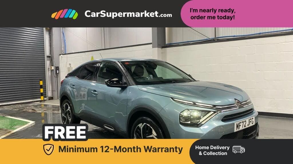 10" high resolution touchscreen user interface, controlling media, connectivity and vehicle settings,5.5 inch backlit full TFT driver's instrument cluster with LED ambient lighting,Active blind spot detection,Apple car play and Android auto,Citroen connect box emergency and assistance system,Citroen connect nav with real time traffic and speedcam,Citroen Smart Pad Support - integrated support for attaching a tablet computer for front passenger,Driver's head-up display,Electronic Power Steering (EPS),Front, rear and lateral parking sensors,In-crash braking,Speed limiter,Tailgate,Top rear vision reversing camera,Voice commands,Advanced comfort suspension - double hydraulic stops on front suspension and single on rear suspension,Bluetooth telephone and audio streaming,DAB Digital radio,3rd brake light,Automatic headlights,Body colour bumpers,Body colour door handles,Boot spoiler,Dark tinted rear windows and side windows with chrome detail,Electrically heated, folding and adjustable external rear view mirrors with courtesy lighting,Electrochrome interior rear-view mirror with automatic day-night switching,Front and rear electric windows,Gloss black rear skirt,Intelligent beam headlights,LED daytime running lights in V signature,LED front fog lamps with static cornering function,LED front headlamps,Perla Nera black painted external rear view mirrors,Rain sensing automatic front windscreen wipers,Rear side wing doors,Rear wiper,Roof aerial,Welcome and goodbye lighting,12V power outlet, 1x USB Type-C socket & data connection, 1x USB Type-A socket at 1st row + 1x USB Type-A socket , 1x USB Type-C socket in 2nd row,3 rear headrests,3 seat bench in 2nd row,Boot light,Dashboard tray in front cabin,Deluxe leather steering wheel with two command blocks,Driver and passenger sunvisors with illuminated vanity mirrors,Dual zone automatic air conditioning,Electrically heated front seats,Front and rear LED interior lighting,Front head restraints,Height adjustable front passenger seat,Height and reach adjustable steering wheel,Map pockets in rear of front seats,Raised centre console with armrest and two cup holders,Rear central folding armrest with cupholders and ski hatch,Single front passenger seat,Split folding rear seats,Two position boot floor,High level acoustic insulation pack - C4/C4 X/e-C4 X,Safety plus pack with highway driver assist - C4/C4 X/e-C4 X,3x3 point rear seatbelts,ABS,Driver and front passenger airbags,Electric parking brake,ESP,Front seatbelt pretensioners,Hill start assist,Manual child lock in second row,Manual deactivation of front passenger airbag,Row 1 and 2 curtain airbags,Row 1 side thorax airbags,Seatbelt unfastened on the move warning,Tyre underinflation detection,Anti-theft alarm (volumetric protection),Immobiliser,Keyless entry and start,Remote locking with deadlocks,18" Bi-tone diamond-cut aeroblade alloy wheels with anti-theft locking wheel nuts,Puncture repair kit with compressor
