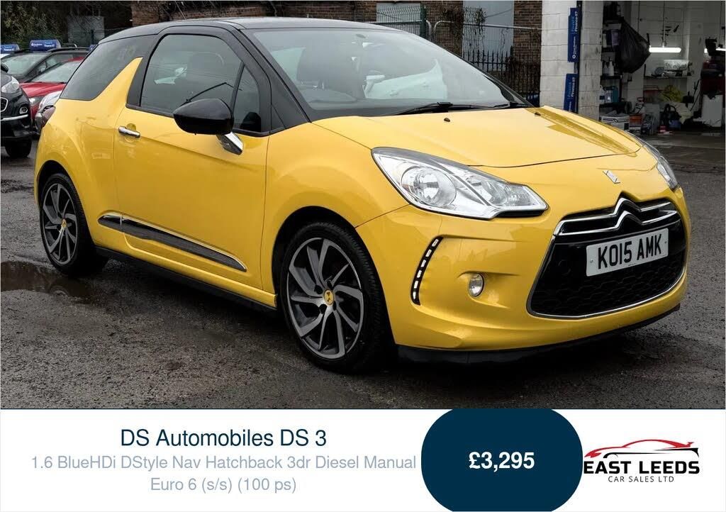 Get ready to turn heads with the stunning DS AUTOMOBILES DS 3 1.6 BlueHDi DStyle Nav Hatchback in a vibrant Yellow! Available now at East Leeds Car Sales in Leeds, West Yorkshire, this sleek and stylish hatchback is not just a car, its a statement! Equipped with a powerful yet economical diesel engine (100 ps) and a smooth manual gearbox, you'll enjoy every drive while being kind to the planet. With a full service history and just serviced, this beauty comes with an MOT valid until 20/01/2027worry-free driving! Stay connected with the user-friendly touch screen sat nav, Bluetooth hands-free, and USB connectivity. Plus, youll ride in comfort with electronic climate control and cruise control for those long journeys. Shod with 17" alloy wheels and brand new tyres, youll feel confident on any road! With finance options available and a 6-month warranty, your dream car is closer than you think! Dont miss out on this fantastic opportunity to own a chic and feature-packed vehicle. Visit us today, and lets make your driving wish come true!