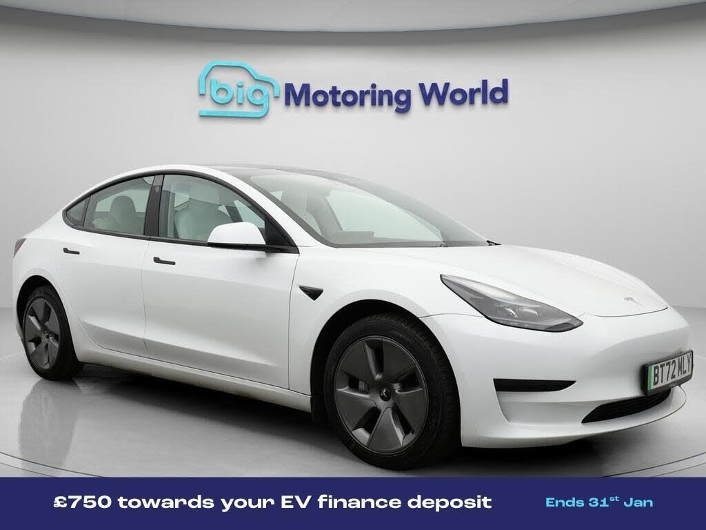 £750 towards your finance depo-Our Tesla Model 3 is finished in White. Specification includes a range of fantastic features including £750 towards your finance deposit, Leather Seats, Satellite Navigation, Heated Seats, Wireless Phone Charging, Heated Rear Seats, Heated Steering Wheel, Bluetooth, Blind Spot Assist, 2 Zone Climate Specification information is supplied by CAPHPI and may vary to the actual car. This data does not form any part of a buying contact. Please check specification prior to purchase in-store. The MOT is valid until October 2026, visit bigmotoringworld.co.uk for more photos, a 360 tour, service history and a free HPI report.Were BIG on peace of mind and this White Tesla Model 3 has completed our comprehensive 200 point inspection and passed all checks. Its ready for you to drive away with immediate collection in-store. We include a 90-day warranty as standard plus an option to extend for up to 3 years.Reserve this car exclusively for you, safely and securely at bigmotoringworld.co.uk, with a fully refundable £99 deposit. Test drive before you buy, with no commitment, no hassle and a completely haggle free experience. Still searching and want to see thousands more cars? We are BIG on choice with over 8000 cars to choose from.Visit our award winning web site bigmotoringworld.co.uk.Were Big Motoring World and were BIG on what matters to you.