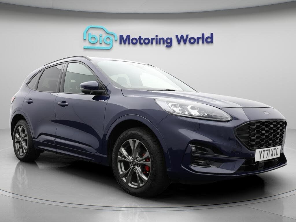 Part Leather Seats,Apple CarPl-Our Ford Kuga comes with optional extras worth £150. Specification includes a range of fantastic features including Part Leather Seats, Apple CarPlay, Lane Assist, Satellite Navigation, Ford SYNC, Privacy Glass, ST Style Pack, Heated Windscreen, Internet, Bluetooth Specification information is supplied by CAPHPI and may vary to the actual car. This data does not form any part of a buying contact. Please check specification prior to purchase in-store. The MOT is valid until August 2026, visit bigmotoringworld.co.uk for more photos, a 360 tour, service history and a free HPI report.Were BIG on peace of mind and this Blue Ford Kuga has completed our comprehensive 200 point inspection and passed all checks. Its ready for you to drive away with immediate collection in-store. We include a 90-day warranty as standard plus an option to extend for up to 3 years.Reserve this car exclusively for you, safely and securely at bigmotoringworld.co.uk, with a fully refundable £99 deposit. Test drive before you buy, with no commitment, no hassle and a completely haggle free experience. Still searching and want to see thousands more cars? We are BIG on choice with over 8000 cars to choose from.Visit our award winning web site bigmotoringworld.co.uk.Were Big Motoring World and were BIG on what matters to you.