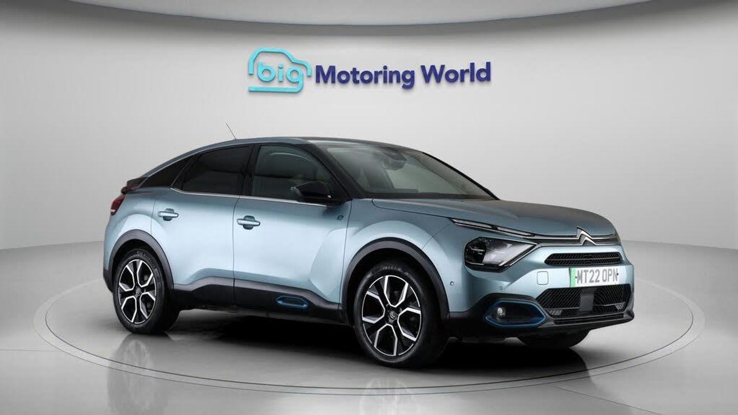 £750 towards your finance depo-Our Citroen e-C4 is finished in Blue. Specification includes a range of fantastic features including £750 towards your finance deposit, Head up Display, 18'' alloy wheels, Leather Seats, Satellite Navigation, Privacy Glass, Heated Seats, Rear View Camera, Heated Steering Wheel, Bluetooth Specification information is supplied by CAPHPI and may vary to the actual car. This data does not form any part of a buying contact. Please check specification prior to purchase in-store. The MOT is valid until January 2027, visit bigmotoringworld.co.uk for more photos, a 360 tour, service history and a free HPI report.Were BIG on peace of mind and this Blue Citroen e-C4 has completed our comprehensive 200 point inspection and passed all checks. Its ready for you to drive away with immediate collection in-store. We include a 90-day warranty as standard plus an option to extend for up to 3 years.Reserve this car exclusively for you, safely and securely at bigmotoringworld.co.uk, with a fully refundable £99 deposit. Test drive before you buy, with no commitment, no hassle and a completely haggle free experience. Still searching and want to see thousands more cars? We are BIG on choice with over 8000 cars to choose from.Visit our award winning web site bigmotoringworld.co.uk.Were Big Motoring World and were BIG on what matters to you.