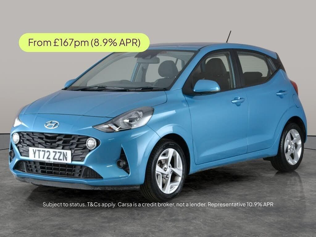 Discover the Hyundai i10 a stylish blue hatchback that makes city driving a breeze. Enjoy seamless connectivity with Apple CarPlay, and park confidently with a handy reversing camera. Keep safe with Lane Departure Warning, while cruise control and air conditioning ensure a comfortable journey every time. With Bluetooth and eye-catching 15in alloy wheels, this automatic petrol i10 combines practicality with contemporary flair. Perfect for everyday adventures. 4 services recorded, last serviced on 17/01/2026 at 21,659 miles. MOT to 17/01/2027. Visit our website for service history, online valuation, full vehicle specification plus multiple images. This vehicle is VAT qualifying. Any feature/option specified here is from 3rd party data. We cannot guarantee the accuracy of any specification supplied by a 3rd party. We recommend that you physically check the specification of the vehicle on site prior to purchase. This information does not form part of the buying contract. Terms & Conditions apply. We have over 2,000 cars available from our 10 national branches, check our website to see all our stock. Our Trustpilot rating is 4.4/5 with over 9,000 reviews.