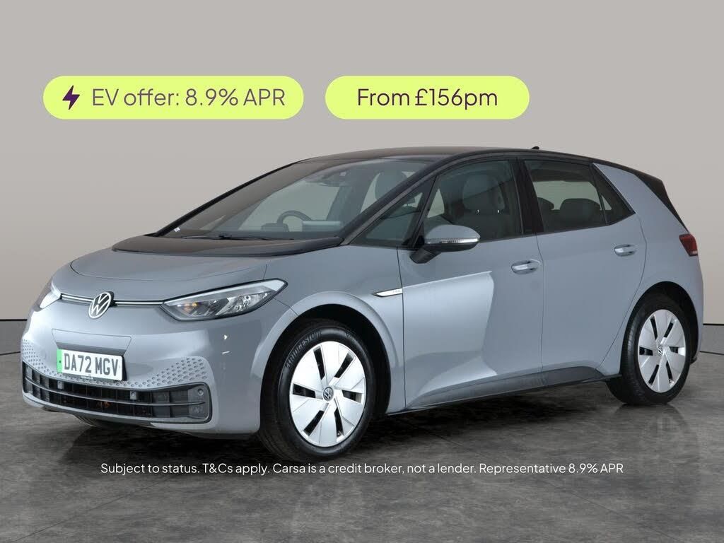 Experience electric driving at its best with this stylish grey Volkswagen ID.3 Life. Enjoy advanced features like Adaptive Cruise Control, LED headlights, and handy Assistance and Comfort Packs for a relaxed drive. Blind Spot Assist and front and rear parking sensors add extra peace of mind, while Bluetooth keeps you connected on the move. Charging leads are included, making topping up effortless wherever you go. Discover comfort and innovation with this fantastic electric hatchback. 1 service recorded, last serviced on 11/12/2024 at 14,005 miles. MOT to 25/11/2026. Visit our website for service history, online valuation, full vehicle specification plus multiple images. This vehicle is VAT qualifying. Any feature/option specified here is from 3rd party data. We cannot guarantee the accuracy of any specification supplied by a 3rd party. We recommend that you physically check the specification of the vehicle on site prior to purchase. This information does not form part of the buying contract. Terms & Conditions apply. We have over 2,000 cars available from our 10 national branches, check our website to see all our stock. Our Trustpilot rating is 4.4/5 with over 9,000 reviews.