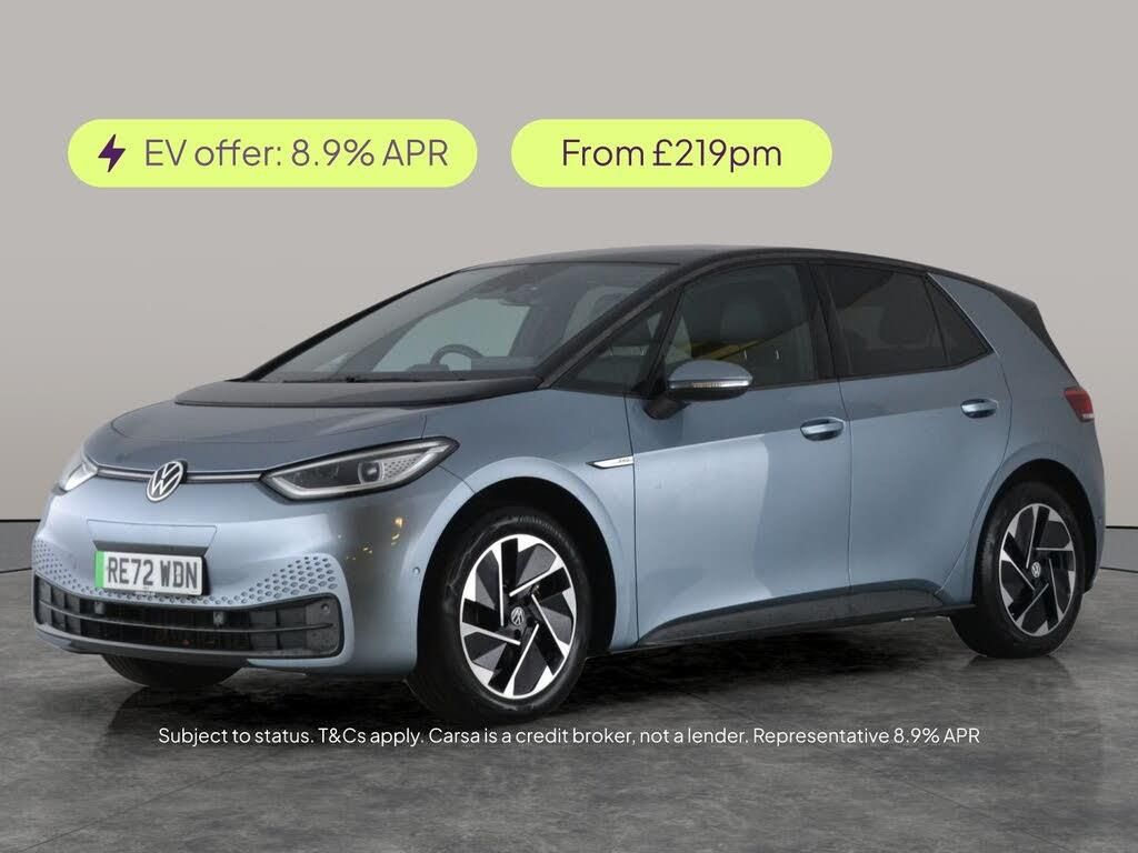 Experience electric driving with this stylish blue Volkswagen ID.3. Enjoy open skies with the panoramic roof and stay comfortable with heated seats and dual-zone digital climate control. The ID.3 comes packed with features, including adaptive cruise control, keyless entry, Apple CarPlay, and a full navigation system. Effortlessly park with front and rear sensors, and enjoy a smooth drive using selectable driving modes and the advanced assistance and comfort packs. This is forward-thinking motoring, ready for your next journey. 1 service recorded, last serviced on 30/09/2024 at 12,197 miles. MOT to 08/09/2026. Visit our website for service history, online valuation, full vehicle specification plus multiple images. This vehicle is VAT qualifying. Any feature/option specified here is from 3rd party data. We cannot guarantee the accuracy of any specification supplied by a 3rd party. We recommend that you physically check the specification of the vehicle on site prior to purchase. This information does not form part of the buying contract. Terms & Conditions apply. We have over 2,000 cars available from our 10 national branches, check our website to see all our stock. Our Trustpilot rating is 4.4/5 with over 9,000 reviews.