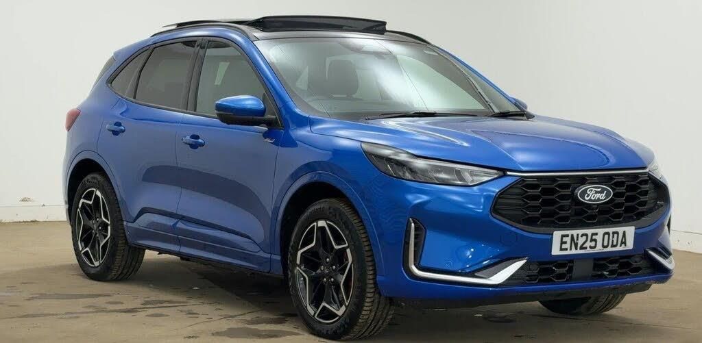 12-Way Ergonomic Power Adjust Driver's and Passenger's Seat, 12V Power Point in Floor Console, 12v Power Point in Cargo Area, 12v Socket - Voltage Regulator, 19in Alloy Wheels - ST-Line- Ebony Black - Machined Finish, 2nd Row Sliding Seats, 360 Degree Camera, ABS - Anti-lock Braking System, Acoustic Vehicle Alert System - AVAS, Adaptive Cruise Control, Air Conditioning - Electronic Automatic Temperature Control - EATC, Airbag - Driver and Front Passenger Side, Airbag - Front Passenger Deactivation Switch, Airbags - Driver and Front Passenger, Airbags - Front and Rear Side Curtain, Aluminium - Finish Front Scuff Plates with ST-Line Script, Aluminium Foot Pedals - ST-Line Design, Ambient Lighting, Auto Dimming Rear View Mirror, Auto Wipers, Automatic Door Relocking, Black Roof Rails, Centre Console with Electronic Parking Brake, Child Locks - Manual on Rear Doors, Cross Traffic Alert, Digital Colour 12.3in Instrument Cluster, Driver Assistance Pack, Driver and Passengers Sun Visor with Illumination, Dual Exhaust Tailpipes with Unique Brushed Stainless Steel Finish, EPAS - Electric Power Assisted Steering, Electric Parking Brake with Auto Hold, Electrical Charging Point in Second Row, Engine Immobiliser - SecuriLock, Enhanced Electronic Stability Control - ESC with Traction Control - Emergency Brake Assist - EBA - Hill Start Assist - HSA and Trailer Sway Control, Exterior Door Handles - Body Coloured, Ford Easy Fuel System, Ford Keyfree System - Keyless Entry with Ford Power Starter Button, Ford SYNC 4 Navigation, Front Seats - 2-Way Manual Height Adjust Passive Head Restraints, Front Seats - Drivers and Passengers Seatback Map Pockets, Front Seats - Sports Style V-shape with High Bolster, Front Windows - Laminated Glass, Front and Rear Bumper - Sporty Body Colour with Rear Ebony High-Gloss Insert, Front and Rear Floor Mats with Red Stitching, Front and Rear Parking Sensors, Full LED Headlamps, Gearshift - Automatic - Electronic Rotary Gearshift Dial, Glovebox Lights, Handsfree Power Tailgate, Headlights - Automatic Follow Me Home Lighting, Headlights - Automatic High Beam Assist, Headlights - Levelling System - Manual, Headlights - Unique Bending, Headliner - Sports Dark, Heated and Power Folding Door Mirrors - Puddle Lights - Memory Function - Camera, High-Mounted Brake Light, Kuga Badge, LED Daytime Running Lights, LED Fog Lights - Front, Lane Keeping Aid with Lane Departure Warning, Large Rear Spoiler, Load Compartment - Lights, Load Compartment - Tie Down Hooks, Load Compartment Carpet, Locking Wheel Nuts, Lower Bodyside Moulding - Body Colour, Lower Door Frame Beltline - Black, Mini Overhead Console with Sunglasses Holder Bin, MyKey, Pop-Out Door Edge Protectors, Power Door Deadlocks - Double Locking, Power Door Locks, Power Opening Panoramic Roof, Pre-Collision Assist with Autonomous Emergency Braking, Quickclear Heated Windscreen, Rear Duct on B-Pillar, Rear Lights - LED, Rear Privacy Glass, Rear Seat - 60-40 Split Folding Seats, Rear Seat Centre Head Restraint, Rear Seats - 2-Way Head Restraint Up-Down, Rear Seats - Folding Centre Armrest with Integrated Cup Holder, Rear Seats - Sliding Seat Adjust Tracks - Fore-Aft, Red Brake Calipers, Remote Tailgate Release, Removable Package Tray, Rocker Panel Mouldings - Body Colour - ST-Line Design, ST-Line Badge on Left and Right Side Wings, ST-Line Bodystyling Kit, ST-Line Front and Rear Bumper Moulding - Body Colour, Seat Belt - Drivers - Front Passenger and Rear Seat Belt Reminder Alert, Seat Belts - Front 3-Point Seatbelts with Load Limiter, Seat Belts - Front Height Adjustable, Seat Belts - Rear Retractable Rear Belt - 3-Point All Positions, Seats - ISOFIX Mounting Provision for Child Seats - Outer Seats Only, Selectable Drive Modes, Single Rear Fog Light, Standard Home Charging Cable - 3-Pin Domestic Socket 230V, Steering Column - Locking Electric, Steering Column - Rake and Reach Adjustment, Steering Wheel - ST-Line Sports-Style Perforated Sensico-Trimmed with Red Stitching
