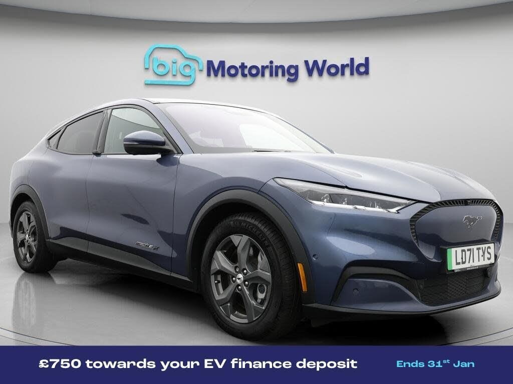 £750 towards your finance depo-Our Ford Mustang Mach-E comes with optional extras worth £950. Specification includes a range of fantastic features including £750 towards your finance deposit, Panoramic Roof, 18'' alloy wheels, Leather Seats, Apple CarPlay, Adaptive Cruise Control, Premium Sound System, Privacy Glass, Rear View Camera, Heated Steering Wheel Specification information is supplied by CAPHPI and may vary to the actual car. This data does not form any part of a buying contact. Please check specification prior to purchase in-store. The MOT is valid until October 2026, visit bigmotoringworld.co.uk for more photos, a 360 tour, service history and a free HPI report.Were BIG on peace of mind and this Blue Ford Mustang Mach-E has completed our comprehensive 200 point inspection and passed all checks. Its ready for you to drive away with immediate collection in-store. We include a 90-day warranty as standard plus an option to extend for up to 3 years.Reserve this car exclusively for you, safely and securely at bigmotoringworld.co.uk, with a fully refundable £99 deposit. Test drive before you buy, with no commitment, no hassle and a completely haggle free experience. Still searching and want to see thousands more cars? We are BIG on choice with over 8000 cars to choose from.Visit our award winning web site bigmotoringworld.co.uk.Were Big Motoring World and were BIG on what matters to you.