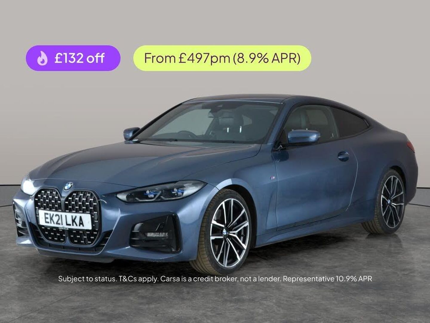 Experience driving pleasure with this stunning blue BMW 4 Series Coupe. Enjoy premium sound from the Harman/Kardon system and stay cosy with a heated steering wheel. The luxurious Vernasca leather seats and heated seats add comfort, while adaptive LED headlights provide brilliant visibility. Effortlessly park with a reversing camera and navigate with built-in sat nav. Other highlights include Apple CarPlay, acoustic glazing for a quiet ride, and the smooth BMW Sport automatic transmission. An impressive coupe inside and out. 3 services recorded, last serviced on 29/08/2025 at 42,403 miles. MOT to 29/12/2026. Visit our website for service history, online valuation, full vehicle specification plus multiple images. Certain features listed may be available via subscription packages at extra costs, please consult with BMW for details. Any feature/option specified here is from 3rd party data. We cannot guarantee the accuracy of any specification supplied by a 3rd party. We recommend that you physically check the specification of the vehicle on site prior to purchase. This information does not form part of the buying contract. Terms & Conditions apply. We have over 2,000 cars available from our 10 national branches, check our website to see all our stock. Our Trustpilot rating is 4.4/5 with over 9,000 reviews.