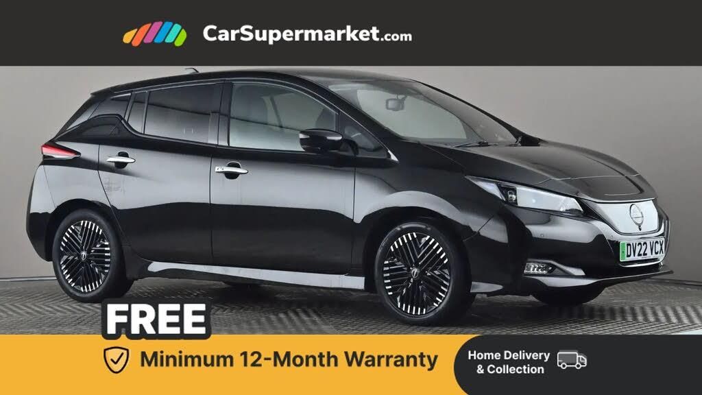 360 degree colour camera view,7" full colour TFT screen combimeter,8" colour display with touchscreen,Apple car play/Android Auto,Blind spot intervention,Blind spot warning,E Pedal,eCall emergency call system,Electric power assisted steering,EV telematics system,Front and rear parking sensors,Intelligent around view monitor,Intelligent Cruise control (ICC),Intelligent driver alert system,Intelligent lane intervention,Intelligent lane keep assist,Lane departure warning system,Moving object detection,Navigation system with voice control,Nissan connect services app (air conditioning control, cabin heating and charging),Rear cross traffic alert,Speed limiter,Traffic jam pilot,Trip computer,39kWh usable battery capacity,6.6 kw On-board charger,Charging port remote opening,Mac Pherson strut front suspension and twist beam axle rear suspension,Max DC charging power, ChaDeMo type: up to 50kW,Audio system with USB,Bluetooth with audio streaming,Bose audio system 7 speakers - 2 tweeters, 4 high and medium frequency door speakers including subwoofer,DAB Digital radio,Rear USB ports,Aero roof spoiler,Auto dimming rear view mirror,Automatic activation of hazard warning lights,Automatic rain sensing wipers,Chrome door handles,Electric front/rear windows,Electrically adjustable and folding door mirrors,Follow me home headlights,Grey rear bumper finisher,High beam assist,Illuminated charge port,Intelligent auto headlights,LED signature daytime running lights with directional indicator,LED signature rear lights,LED third brake light,Rain sensor,Rear privacy glass,Rear side wing doors,Rear wiper,Shark fin antenna,12V socket,3 seat bench in 2nd row,60/40 split folding rear seat,Automatic climate control with pollen filter and timer,Energy saving cabin heating system with heat pump,Front centre console and armrest,Front head restraints,Front seatback pockets,Heated rear seats,Height adjustable driver seat,Isofix child seat anchor points,Manual adjust driver/passenger seats,Multifunction leather steering wheel,Part leather with ultrasuede and synthetic leather upholstery,PTC (Positive Temp Co-efficent) heater,Rake and reach adjustable steering column,Rear assist grips,Rear head restraints,Single front passenger seat,Telescopic steering wheel adjustment,Heat pack with Heated front seats - Leaf,LED pack with Full LED headlights - Leaf,3 point front seatbelts with pre-tensioners,3x3 point rear seatbelts,ABS with EBD and brake assist,Curtain airbags,Driver and passenger airbags,Electrically driven intelligent braking system,Electronic parking brake,Electronic Stability Programme (ESP),Front and rear vented brake discs,Front seatbelt pretensioners + load limiters,Height adjustable front seatbelts,Hill start assist,Intelligent emergency braking with pedestrian recognition,Intelligent ride control,Intelligent trace control,Manual child proof rear door locks,Nissan safety shield,Seatbelt reminder for driver and front passenger,Side airbags,Traction control,Tyre pressure monitoring system,VDC Dynamic Vehicle Control,Deadlock,Immobiliser,Intelligent Key with push button starter,Remote central locking,Thatcham Cat.1 alarm,17" Diamond cut black alloy wheels