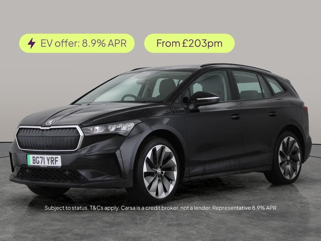 Experience the future of driving with this black Skoda Enyaq SUV. Enjoy seamless connectivity through Apple CarPlay and SmartLink, plus in-car WiFi for staying online on the go. Bright LED headlights light your way, while Sat Nav ensures every journey is smooth. With keyless start, cruise control, Bluetooth, and dual-zone climate control, every journey is both comfortable and convenient. Discover electric motoring in style and comfort. 2 services recorded, last serviced on 19/01/2026 at 63,860 miles. MOT to 06/03/2026. Visit our website for service history, online valuation, full vehicle specification plus multiple images. This vehicle is VAT qualifying. Any feature/option specified here is from 3rd party data. We cannot guarantee the accuracy of any specification supplied by a 3rd party. We recommend that you physically check the specification of the vehicle on site prior to purchase. This information does not form part of the buying contract. Terms & Conditions apply. We have over 2,000 cars available from our 10 national branches, check our website to see all our stock. Our Trustpilot rating is 4.4/5 with over 9,000 reviews.