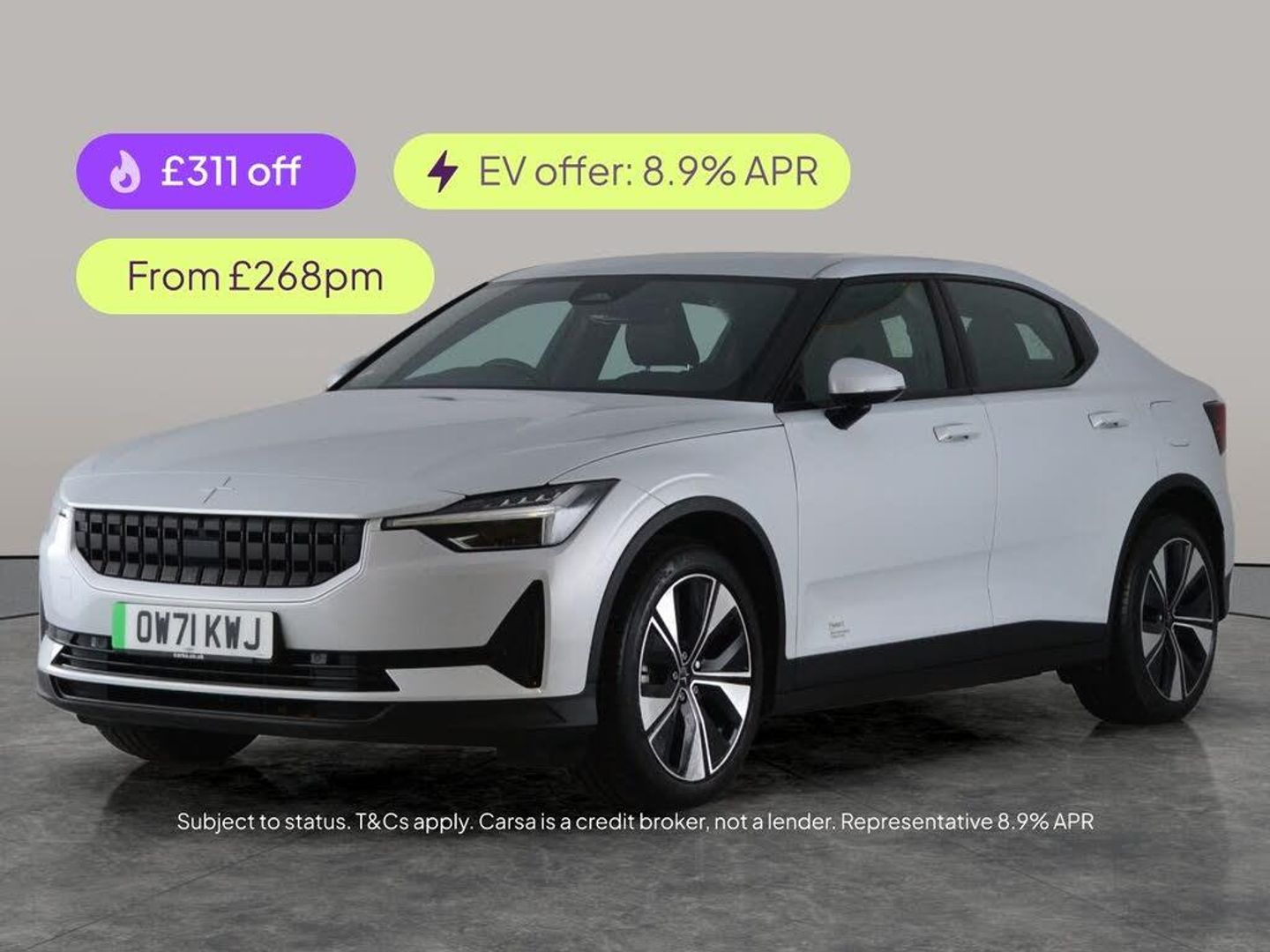 Experience the Polestar 2 in stunning silver with a panoramic sunroof, upgraded sound system, and keyless entry for top-tier comfort and convenience. Enjoy the immersive drive with heated seats, a heated steering wheel, and driver memory seat for ultimate comfort. Stay seamlessly connected with Apple CarPlay and navigate confidently with the integrated sat nav and reversing camera. Advanced safety features include active lane assist, lane departure warning, adaptive LED headlights, and electric seats for a premium driving experience. 3 services recorded, last serviced on 16/12/2025 at 52,888 miles. MOT to 15/01/2027. Visit our website for service history, online valuation, full vehicle specification plus multiple images. This vehicle is VAT qualifying. Any feature/option specified here is from 3rd party data. We cannot guarantee the accuracy of any specification supplied by a 3rd party. We recommend that you physically check the specification of the vehicle on site prior to purchase. This information does not form part of the buying contract. Terms & Conditions apply. We have over 2,000 cars available from our 10 national branches, check our website to see all our stock. Our Trustpilot rating is 4.4/5 with over 9,000 reviews.