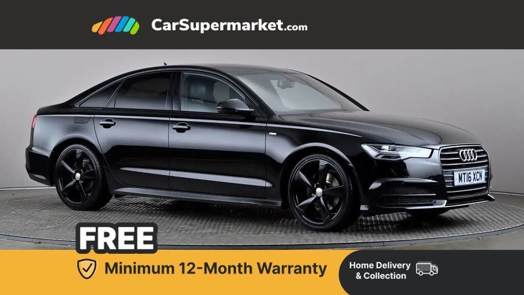 Audi drive select,Audi parking system plus with front and rear sensors,Audible and visual fasten seat belt warning - front and rear,Mobile telephone preparation - bluetooth interface,PAS,Service interval indicator,Diesel particulate filter,Audi music interface,Auxiliary input socket,DAB digital radio module,Auto dimming rear view mirror,Automatic headlights + automatic windscreen wipers,Body colour bumpers,Body colour door mirrors and handles,Body coloured door mirrors,Electric front/rear windows,Headlight washers,LED daytime running lights,LED rear lights,Platinum grey front lip spoiler,Privacy glass (to rear of B post),S Line body styling,12 way electric front seats with driver's memory function,12V power in rear centre console,4 way electric lumbar support for driver and front passenger,4 zone climate control,Aluminium door sill trims,Door sill trims with S line logo,Front centre armrest,Front head restraints,Height adjustable front seats,Height/reach adjust steering wheel,Isofix front passenger and rear seat preparation,Jack and tool kit,Perforated leather gearknob,Rear headrests,Split folding rear seat,Black styling pack - A6,Non smoking pack - A6,3 point seatbelts on all seats,ABS/EBD,ASR traction control,Curtain airbags,Driver and passenger airbags,Driver/front passenger side airbags,Electromechanical parking brake,Electronic stability control,Front passenger airbag deactivation,Hill hold assist,Tyre pressure monitoring system,Warning triangle and first aid kit,Anti theft alarm,Anti-theft wheel bolts,Immobiliser,Keyless start,Remote central locking,Alcantara door trim,Space saver spare wheel