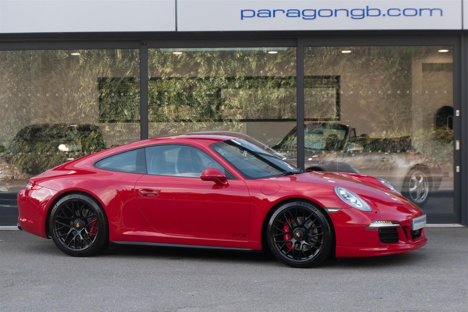 Porsche 911 Carrera 2 GTS Coupe (991) 7-speed PDK, Carmine Red, Black leather sports seats, air conditioning, 20" GTS centre lock wheels, touchscreen satellite navigation, on board computer, Porsche stability management, bi-xenon headlights, stop/start function, automatic headlights, switchable sports exhaust, LED daytime running lights.