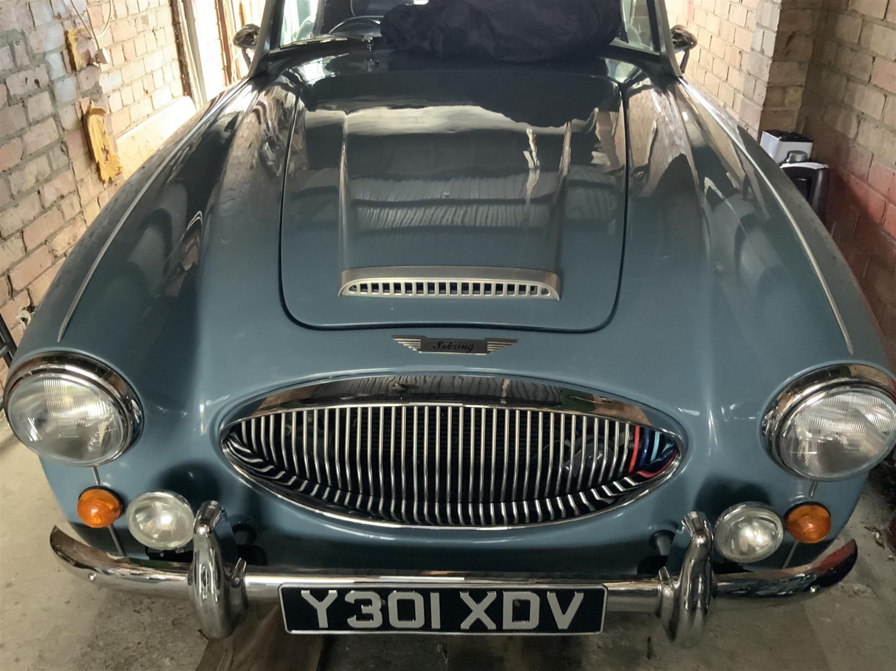 The wire wheel removal tool has never been used.It was factory built less than 7k miles ago and comes with MOT and comprehensive factory build photographic history.Heated blue leather seats with cream piping and electric windows.Blue over cream with blue mohair soft top.Full walnut burr dash with complementary parchment colour gauges.Blue carpet and fully trimmed with cream pipping including boot.
