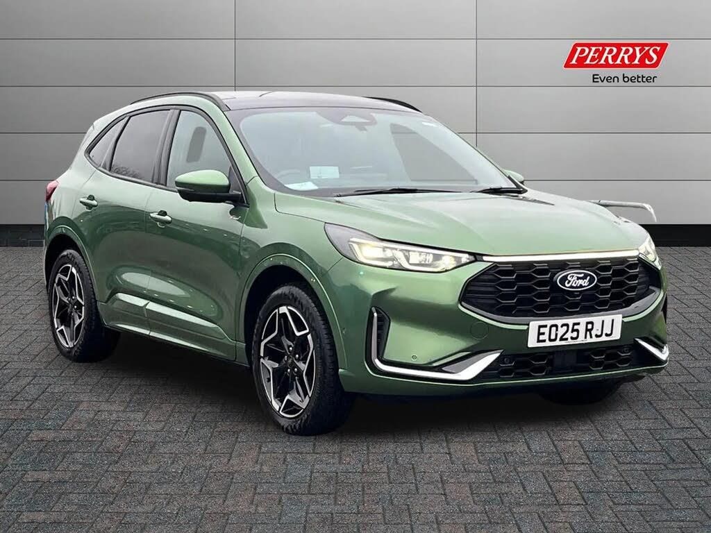 12.3" digital colour instrument cluster,360 degree view camera,Clear exit assist,Cross traffic alert with active braking,e-Call (emergency call),Ford easy fuel,Ford SYNC 4 Navigation with 13" touchscreen, DAB radio, emergency assistance, Andriod Auto/Apple CarPlay, 5G modem & Ford Pass connect,Front and rear parking sensors,Hands free power tailgate,Lane centering assist,Lane keeping aid with lane departure warning,Power assist steering,Selectable drive modes,Service interval indicator,Sports suspension,B&O premium audio system with 10 speakers, subwoofer and 2 USB ports,Auto headlamps with high and low beam,Black roof rails,Body colour bumpers,Front LED fog lamps,Large rear spoiler,LED daytime running lights,LED rear lights,LED third brake light,Pop out door edge protectors,Power front/rear windows with global close,Power heated folding door mirrors with puddle lights, memory function and camera,Power opening panoramic roof,Quickclear heated windscreen,Rain sensing wipers,Rear privacy glass,Rear side wing doors,Rear wiper,ST-Line body styling kit,2nd row sliding seats,Electronic automatic temperature control (EATC),Front and rear head restraints,Partial premium touch sensico upholstery,Rear centre head restraint,Single front passenger seat,Sports seats,Driver assistance pack - Kuga Auto,Winter pack - Kuga,3x3 point rear seatbelts,Airbags - front driver/passenger, front and rear curtain,Drivers knee airbag,Dynamic brake support,Electronic stability control (ESC) and ABS,Evasive steering assist,Ford MyKey Gen 2 safety system,Manual child proof rear door locks,Pre collision assist with autonomous emergency braking,Rear seat Occupancy alert,Red brake calipers,Tyre pressure monitoring system,Engine immobiliser,Keyless entry and Ford power start button (Keyless start),Locking wheel nuts,Remote powered central double locking doors,Thatcham category 1 alarm,Bursting Green,Luggage Compartment Mat,Single Phase Public Charge Cable and Cable Bag,Technology Pack
