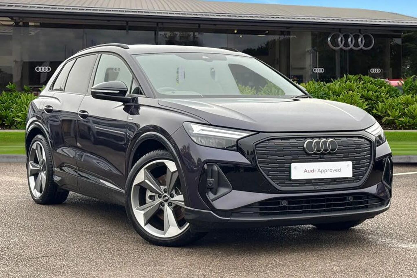 Feast your eyes on this Audi Approved Q4 Black Edition 45 e-tron in Aurora Violet with its 21" 5-arm rotor evo alloy wheels which look superb out on the roads. The LED headlights with LED rear lights create that strong visibility in all weather conditions. Experience the convenience of the Comfort Key with Safelock, providing keyless entry for effortless access. Inside, you'll find a refined cabin featuring 3-Zone Electronic Climate Control for personalised comfort, and a Bluetooth Interface for seamless connectivity. Parking is made simpler with the integrated Rear-View Camera which creates that additional vision. The 4-way lumbar support is great for maximising comfort behind the wheel. Another great feature is the heated front seats which are perfect for those cooler mornings. DAB/FM radio is fitted to this vehicle which gives a larger variety of stations for all passengers and driver to listen to and enjoy on any journey in this vehicle. The interior is fitted with the gorgeous seats throughout creating a comfortable look and feel to this vehicles cabin. The multimedia interface allows the driver and front passenger to access a range of different media, such as the driver assist which can be adjusted to your driving preference on all journeys. The Audi Smartphone interface gives you access to Apple Carplay and Android Auto, allowing you to use apps like Spotify, Google Maps, Apple Music and other apps also. The Audi drive select feature enables you to select your prefered drive mode on any journey, for a more personalised driving experience. This vehicle will benefit from remainder of Manufacturer's Warranty or minimum 1-year warranty and 1 year's roadside assistance at the point of purchase. Please contact Crewe Audi for more information or enquire online today. This vehicle meets the requirements ULEZ. By driving a low emissions vehicle, you are helping to improve air quality and reduce the health risks associated with poor air quality.