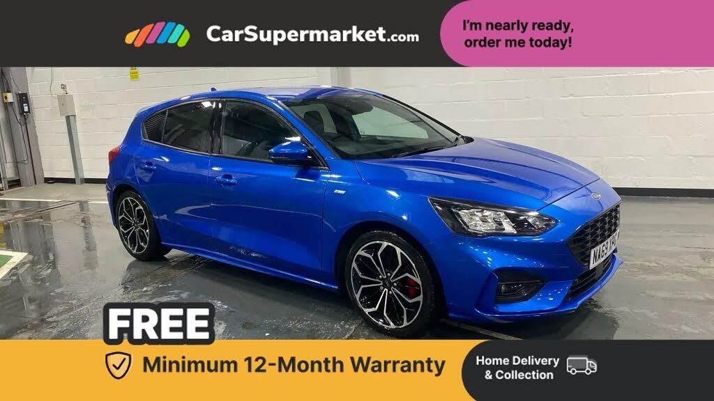 Bluetooth system,Digital clock,Easy fuel capless refuelling system,Eco mode,Ford pass connect,Ford SYNC 3 nav system with DAB radio, 8" colour touch screen, voice control, app link, Apple car play/Android auto and 4.2" TFT coloured cluster,Front and rear parking sensors,Intelligent speed assist,Lane keeping aid with lane departure warning,PAS,Selectable drive mode,Trip computer,Sports tuned suspension,2 USB ports,Aux input,'Quickclear' heated windscreen/heated washer jets,Auto dimming rear view mirror,Auto headlamps (on/off),Automatic rain sensing wipers,Body colour large rear spoiler,Body colour side skirt,Body coloured bumpers,Body coloured door handles,Body coloured electrically operated and heated door mirrors with side indicators,Electrically operated front and rear windows with one touch opening and closing,Front variable intermittent wipers with electric wash,Heated rear window,LED daytime running lamp,LED front fog lamps with cornering function,Polished twin tailpipe,Power folding door mirrors with puddle lights,Rear privacy glass,ST-Line upper and lower grille with full body styling kit and wing badges,Tailgate wash/wipe,Unique door and instrument panel inserts,3 spoke flat bottomed leather steering wheel with red stitching,6 way power adjustable driver seat,60/40 split back and cushion rear seats with 2 height adjustable headrests,Alloy finish pedals,Aluminium gear knob,Centre console with armrest,Dark headliner,Dual zone electronic air temperature control,Front passenger seat manual height and lumbar adjust,Heated front seats,Height adjustable front headrests,Isofix child seat preparation,Part leather upholstery with red stitching,Reach + rake adjustable steering column,Rear centre headrest,Soft console knee pads with red stitching,ABS+Electronic Brake force Distribution,Auto hold function,Driver airbag,Electronic parking brake,Electronic stability control,Front and rear seatbelt reminder,Front inertia reel height adjustable seatbelts with pre-tensioners,Front passenger airbag,Front side airbags,Hill start assist,Passenger airbag deactivate switch,Post collision braking,Pre collision assist with autonomous emergency braking and pedestrian/cyclist detection,Red brake calipers,Side curtain airbags,Three rear inertia reel lap/diagonal seatbelts,Tyre pressure monitoring system,MyKey system,Remote central locking & engine immobiliser,Thatcham category 1 alarm,Contrast stitching - Red,18" 5x2 spoke matt black machined finish alloy wheels,Mini steel spare wheel