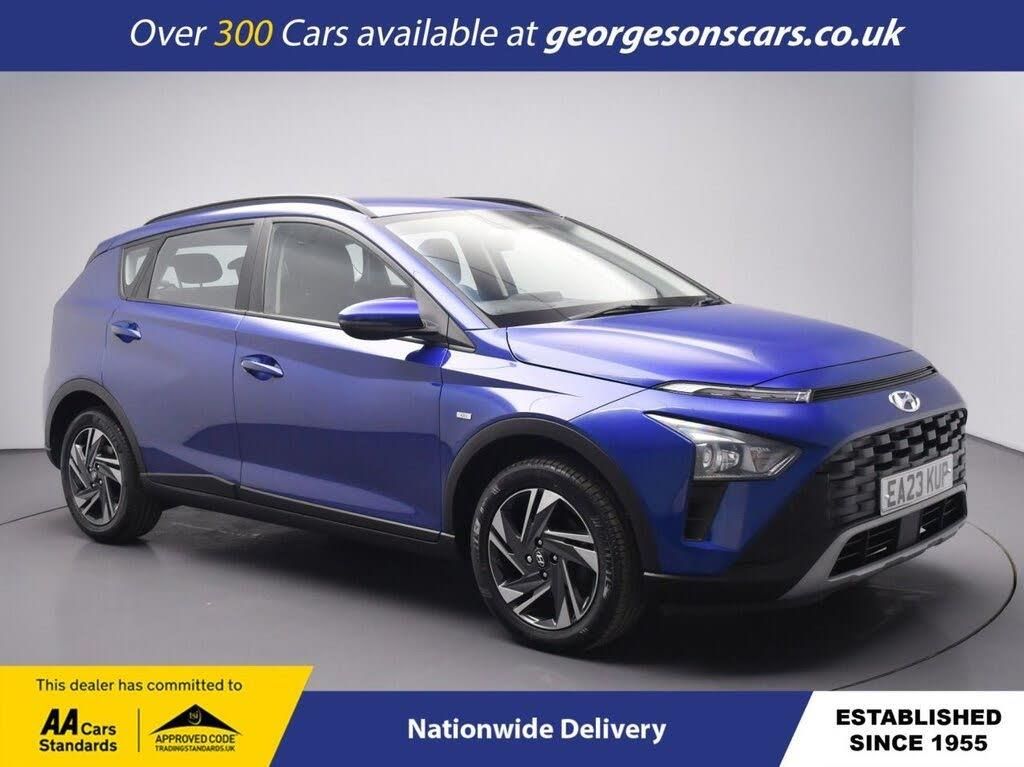 The Hyundai Bayon 1.0 T-GDi MHEV SE Connect combines a responsive 1.0-litre turbo mild-hybrid petrol engine with 100hp, delivering 0-62mph in 11.7 seconds and up to 53.3mpg in this front-wheel-drive setup with a precise 6-speed manual transmission. The SE Connect trim offers practical style with 16-inch alloy wheels and a modern interior for effortless urban SUV driving. Navigate effortlessly with Apple CarPlay, Bluetooth and DAB radio. Parking is a breeze thanks to the reverse camera and parking sensors. Stay comfortable with air conditioning. Adaptive cruise control with speed limiter and lane assist enhance safety and relaxation on highways. The spacious five-door SUV design includes a 411-litre boot for practicality. Georgesons Cars, one of the leading used car dealerships near me, has been serving Liverpool and the wider Merseyside area since 1955. As a third-generation family-run business, we offer a wide variety of cars for sale, including over 300 quality used cars in Liverpool. Whether you're searching for cars for sale in Liverpool or reliable auto used cars, our inventory is price-checked daily, ensuring competitive pricing. Rated 5-stars on TrustPilot, Georgesons Cars proudly upholds the AA dealer promise and Chartered Trading Standards approval. Contact us today to explore our full range of cars for sale and let our team help you find your next car!