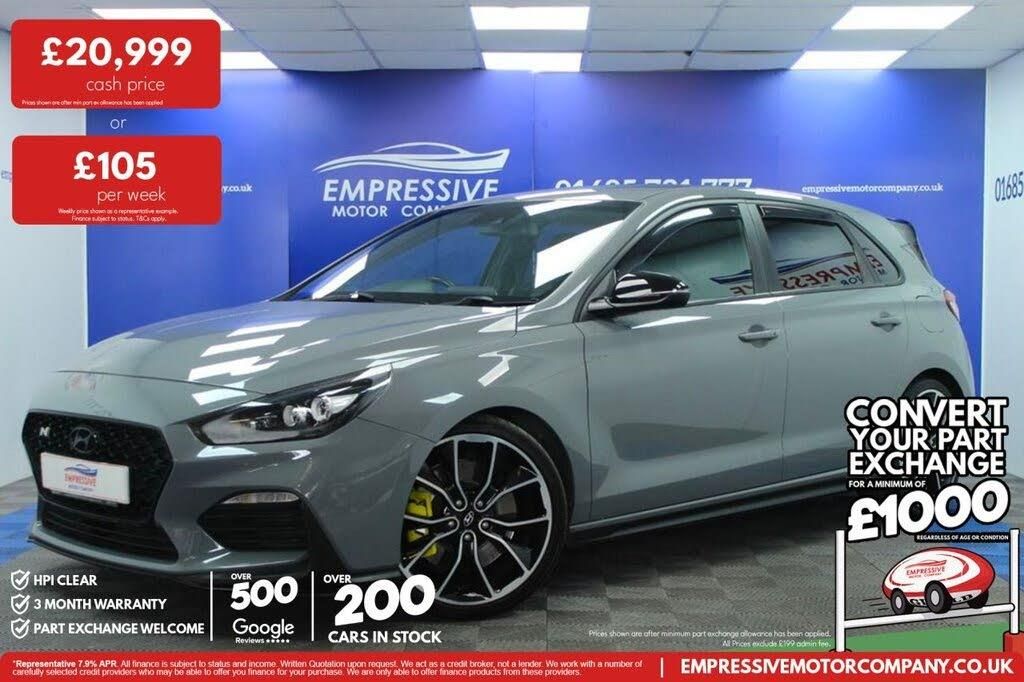 ****IMPRESSIVE I30N**** Just in! This Stunning 2020 HYUNDAI I30 2.0 T-GDi N Performance Hatchback 5dr Petrol Manual Euro 6 (s/s) (275 ps) Finished In Shadow Grey! 53,209 miles - 2.0L petrol (275 bhp) - 6 speed manual - Finished in best colour: shadow grey - 19" diamond cut wheels - Automatic LED headlights - N-performance trim: rear spoiler, side skirts, rear diffuser - Reverse camera - Parking sensors - Half leather electric N-line seats with driver memory - Heated seats - Heated steering wheel - Touch media screen with sat nav - Bluetooth with apple car play - USB - Aux - Automatic 2 zone climate control - Start stop - Traction control - Voice control - Cruise control - Speed limiter - Eco mode - Sport mode - N-Performance mode (track mode) - Automatic wipers - Lane assist - Electric folding mirrors * 3 MONTH WARRANTY AS STANDARD + * LOW RATE FINANCE AVAILABLE + * UK DELIVERY + * PART EXCHANGE +