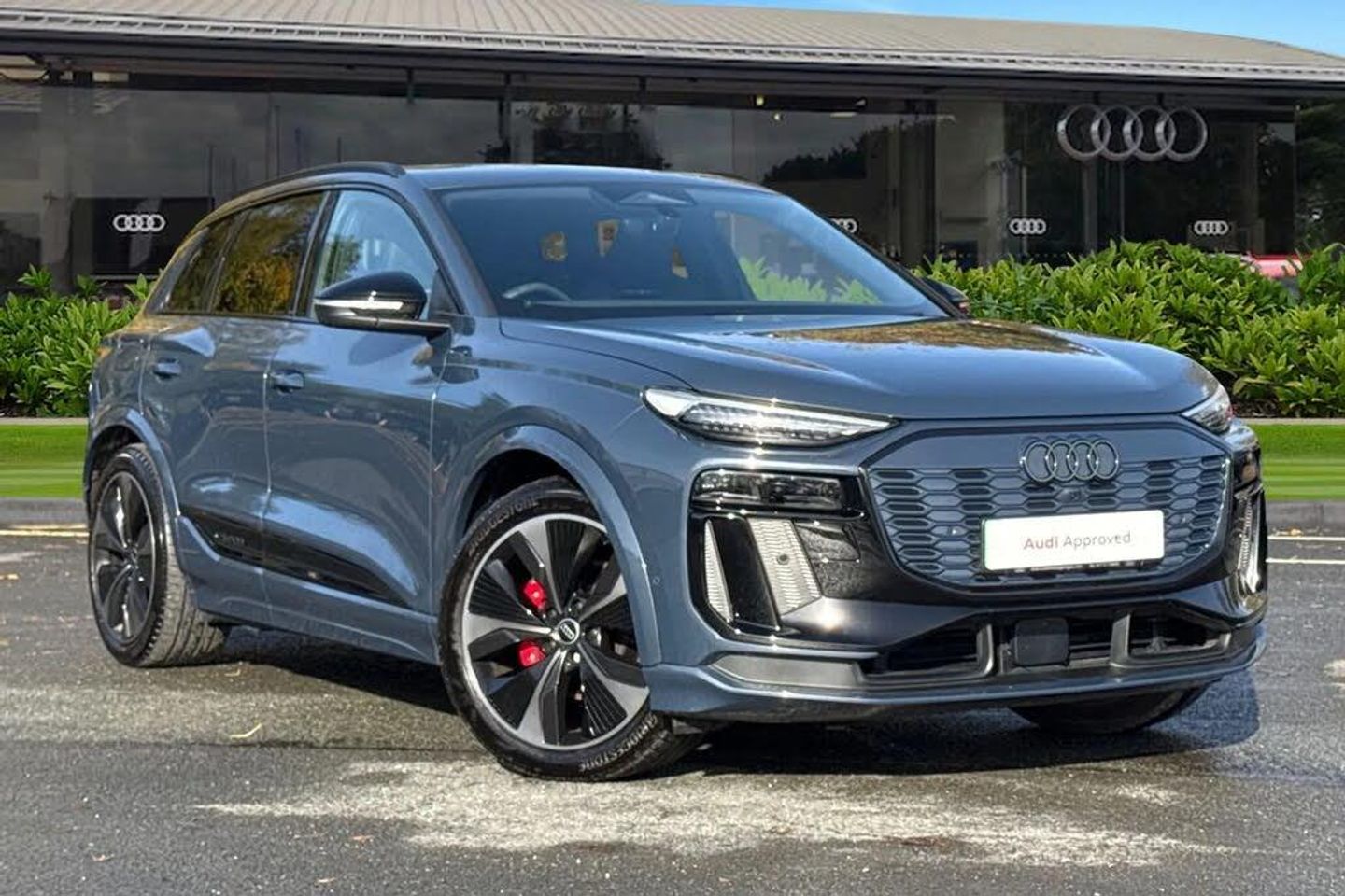 Experience the future of premium electric mobility with this Approved Used Audi Q6 e-tron Edition 1 Quattro, finished in striking Plasma Blue. Powered by a 100kWh battery, it delivers a range of up to 349 miles (WLTP) and supports AC and DC charging, replenishing from 10-80% in as little as 24 minutes when connected to a 350kW ultra-rapid public charger. With its bold S line styling, 21-inch Audi Sport alloy wheels in gloss black and black styling package plus, this Q6 e-tron commands attention from every angle. Matrix LED headlights with digital light signatures, LED rear lights Pro and red brake calipers add a distinctly sporty touch, while the full paint finish and roof rails in black underline its confident, dynamic design. Inside, the cabin blends cutting-edge technology with luxurious craftsmanship. The Front Sport Seats Plus are finished in Fine Nappa leather with diamond stitching and integrated headrests, complemented by Dinamica microfibre trim, anthracite high-tech mesh inlays and ambient lighting package plus with dynamic interaction light. Comfort is assured with heated front and rear seats, pneumatic lumbar support with massage and 3-zone automatic climate control. Innovation defines every journey with the MMI Navigation Plus featuring a 14.5-inch OLED touchscreen, Audi Virtual Cockpit Plus and an additional 10.9-inch passenger display. The Bang & Olufsen 3D Premium Sound System with integrated headrest speakers delivers exceptional audio clarity, while the augmented reality head-up display projects key information seamlessly onto the windscreen. Safety and assistance features include Adaptive Cruise Control, Lane Change Assist, Intersection Assist, Park Assist Plus with 360° camera, Audi Pre-Sense and Proactive Occupant Protection. This vehicle is compliant with Clean Air Zone (CAZ) or Ultra Low Emission Zone (ULEZ) regulations, meaning it produces low emissions and helps to improve air quality in our cities. If this is the car for you, please contact us to arrange a viewing or test drive.