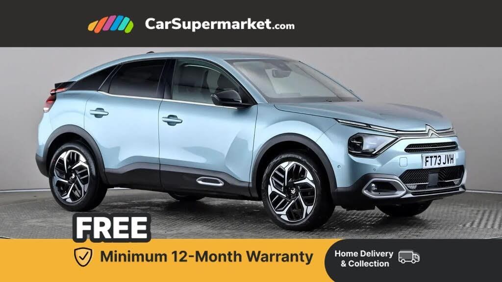 5.5 inch backlit full TFT driver's instrument cluster with LED ambient lighting,Active blind spot detection,Apple car play and Android auto,Citroen connect box emergency and assistance system,Citroen Smart Pad Support - integrated support for attaching a tablet computer for front passenger,Driver's head-up display,Electronic Power Steering (EPS),Front, rear and lateral parking sensors,In-crash braking,My Citroen Drive Plus: 10" high-resolution touchscreen user interface, controlling media, connectivity, vehicle settings + connected nav,Speed limiter,Tailgate,Voice commands,Advanced comfort suspension - double hydraulic stops on front and rear suspension,6 speakers,Bluetooth telephone and audio streaming,DAB Digital radio,3rd brake light,Automatic headlights,Body colour bumpers,Body colour door handles,Boot spoiler,C-Series badging on front wing,Dark tinted rear windows and side windows with chrome detail,Electrically heated, folding and adjustable external rear view mirrors with courtesy lighting,Electrochrome interior rear-view mirror with automatic day-night switching,Front and rear electric windows,Gloss black rear skirt,Intelligent beam headlights,LED daytime running lights in V signature,LED front fog lamps with static cornering function,LED front headlamps,Perla Nera black painted external rear view mirrors,Rain sensing automatic front windscreen wipers,Rear side wing doors,Rear wiper,Shark fin roof aerial,Welcome and goodbye lighting,12V power outlet, 1x USB Type-C socket & data connection, 1x USB Type-A socket at 1st row + 1x USB Type-A socket , 1x USB Type-C socket in 2nd row,3 rear headrests,3 seat bench in 2nd row,Alcantara and black leather effect textile seats,Boot light,Dashboard tray in front cabin,Deluxe leather steering wheel with two command blocks,Driver and passenger sunvisors with illuminated vanity mirrors,Dual zone automatic air conditioning,Electrically heated front seats,Front and rear LED interior lighting,Front head restraints,Height adjustable driver's seat with adjustable lumbar support,Height adjustable front passenger seat,Height and reach adjustable steering wheel,Map pockets in rear of front seats,Raised centre console with armrest and two cup holders,Rear central folding armrest with cupholders and ski hatch,Single front passenger seat,Split folding rear seats,Two position boot floor,XXL storage in front cabin,High level acoustic insulation pack - C4/C4 X/e-C4 X,3x3 point rear seatbelts,ABS,Driver and front passenger airbags,Electric parking brake,ESP,Front seatbelt pretensioners,Hill start assist,Manual child lock in second row,Manual deactivation of front passenger airbag,Row 1 and 2 curtain airbags,Row 1 side thorax airbags,Seatbelt unfastened on the move warning,Tyre underinflation detection,Anti-theft alarm (volumetric protection),Immobiliser,Keyless entry and start,Remote locking with deadlocks,18" Bi-tone diamond-cut aeroblade alloy wheels with anti-theft locking wheel nuts,Puncture repair kit with compressor
